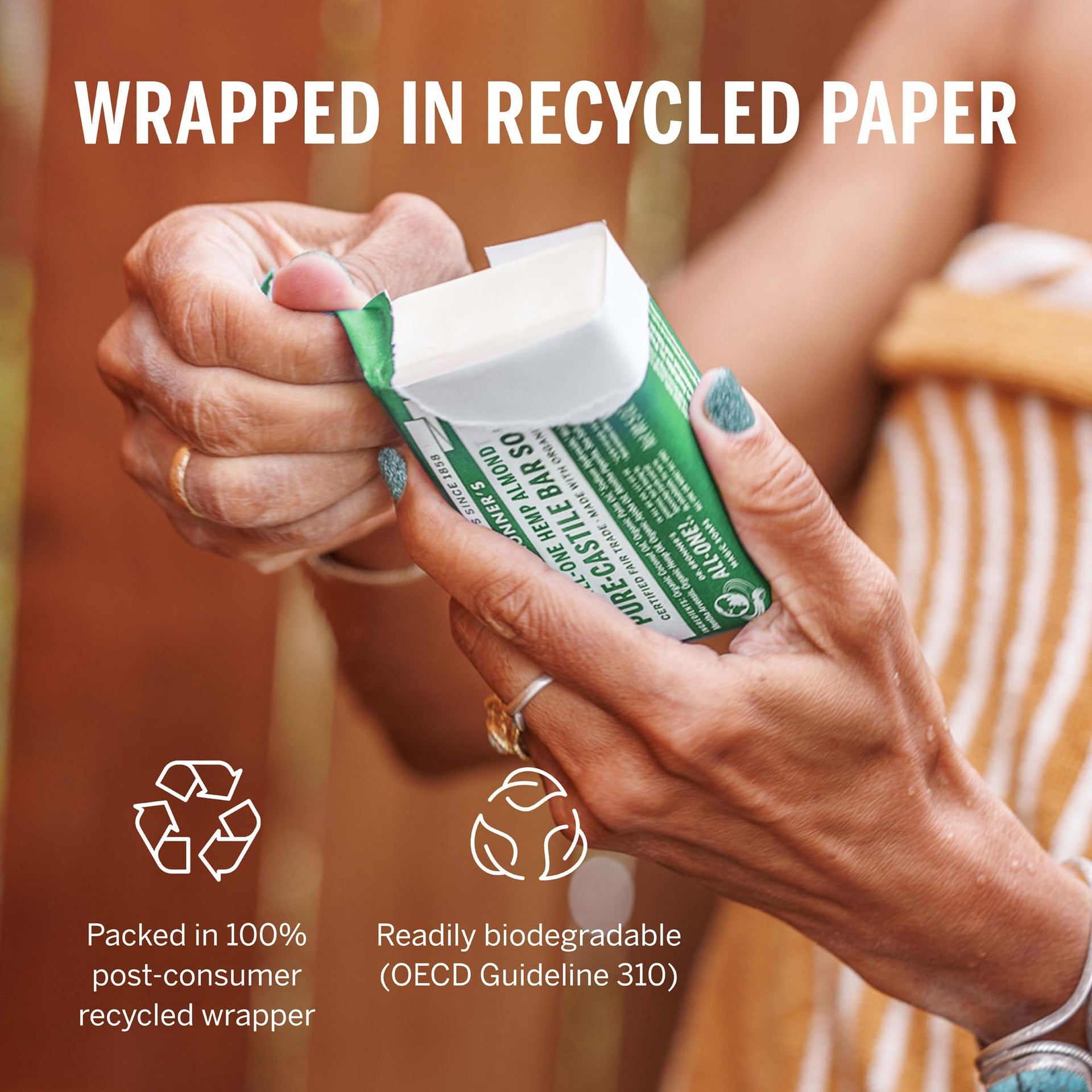 - PACKAGED IN POST-CONSUMER RECYCLED WRAPPERS: Every almond castile bar soap is wrapped in recycled paper, helping reduce landfill waste. Our packaging supports a circular economy and cleaner planet