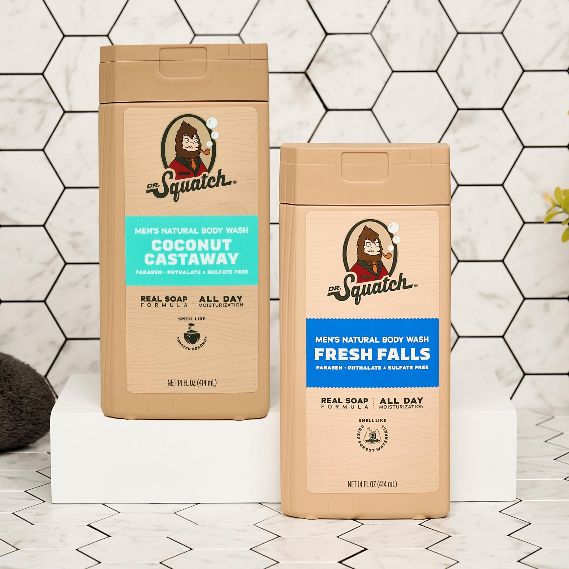 Dr. Squatch Body Wash for Men 2-Pack, Natural Ingredients, No Paraben/Sulfate, Long-Lasting Moisture & Fresh Scent, 14 oz