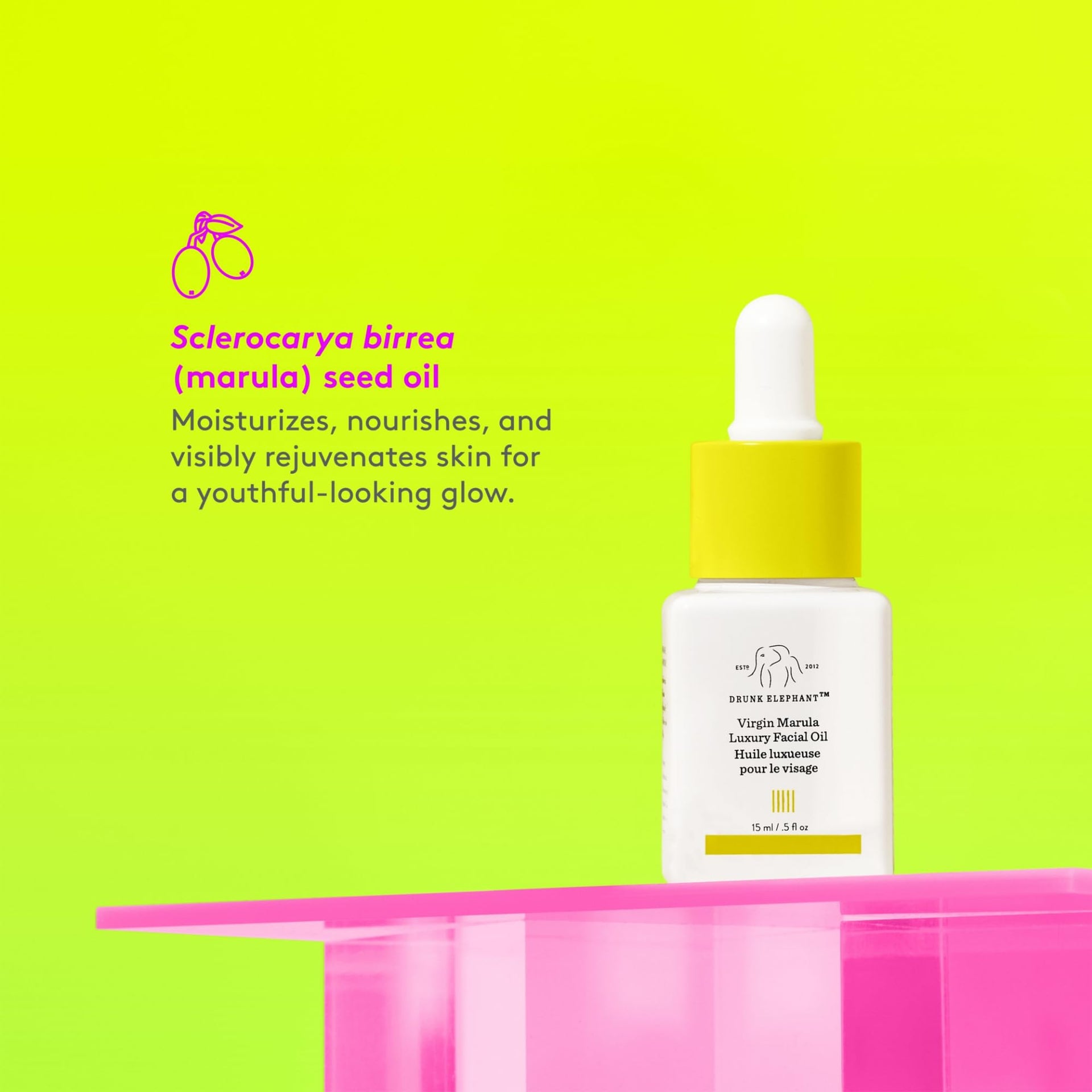 Drunk Elephant Virgin Marula Luxury Facial Oil 15ml/.5oz – Clean, Cruelty-Free Skincare, Dermatologist-Tested, No Silicones or Fragrance