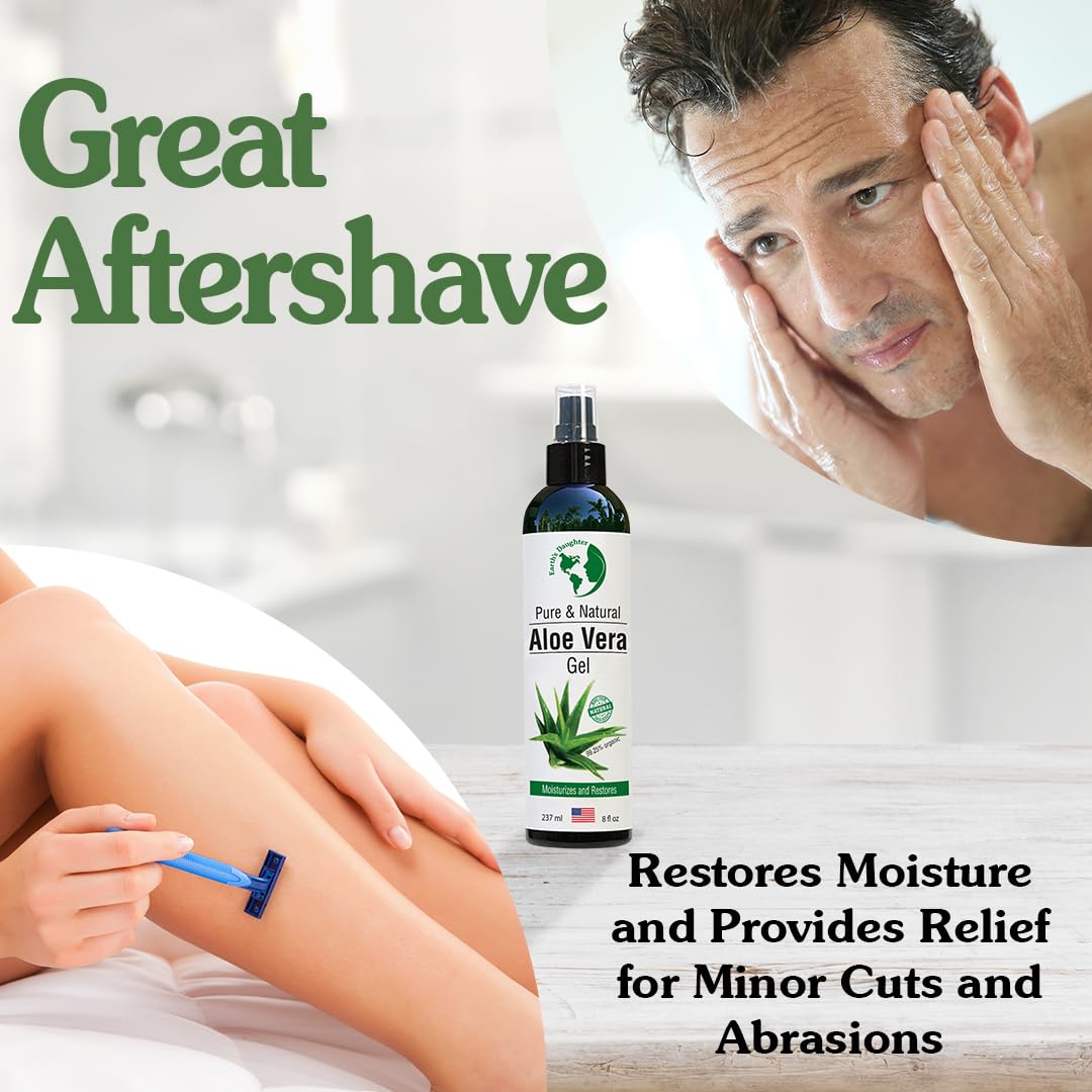 Earth's Daughter Organic Aloe Vera Gel, 100% Pure Cold-Pressed - Soothes Face, Hair, Acne, Sunburn, Bug Bites, Rashes & Eczema, 8oz