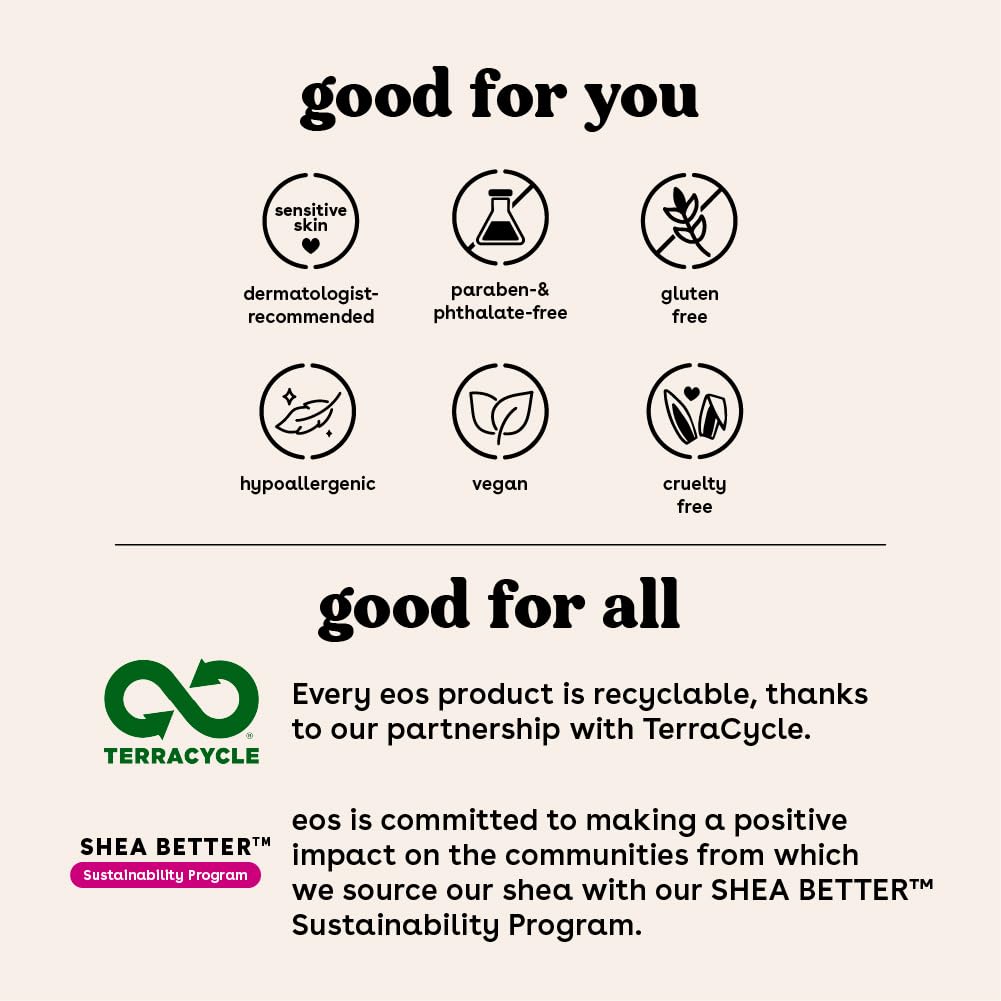 - COMPLETE THE REGIMEN: Combine with our eos body lotions and body wash for the smoothest everything shower