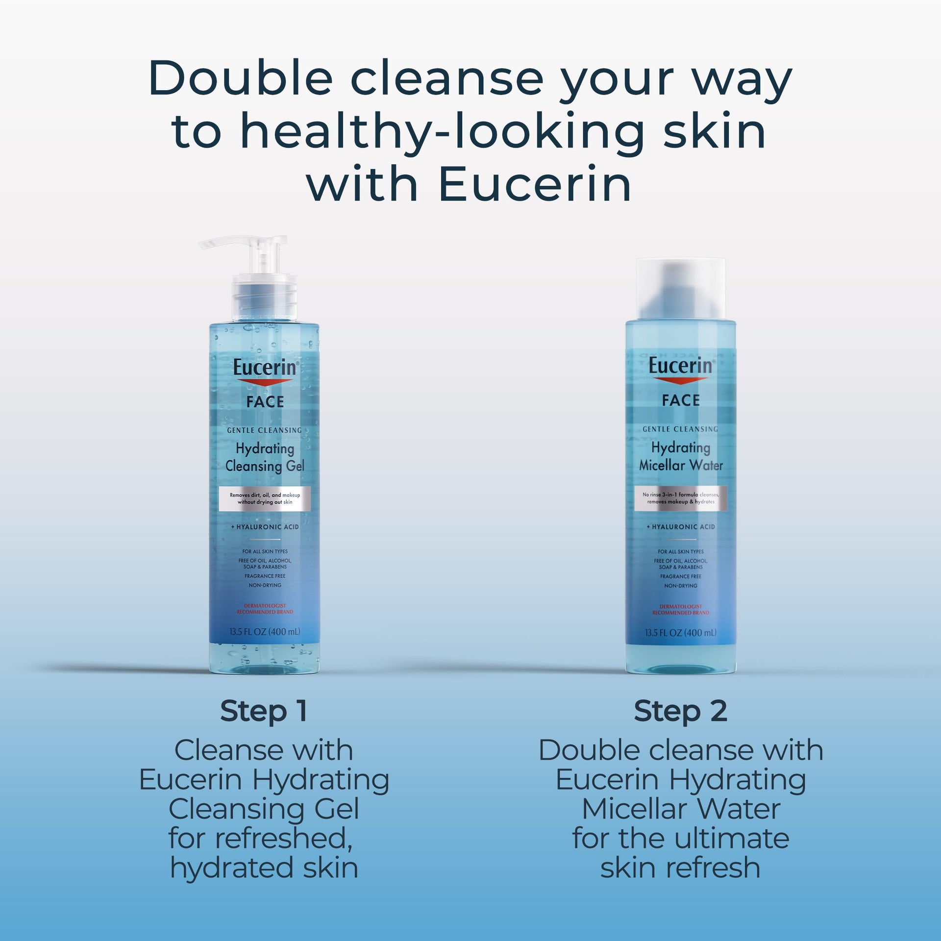 Eucerin Face Gentle Cleansing Hydrating Cleansing Gel, Daily Face Wash and Makeup Remover with Hyaluronic Acid, 13.5 Fl Oz Bottle