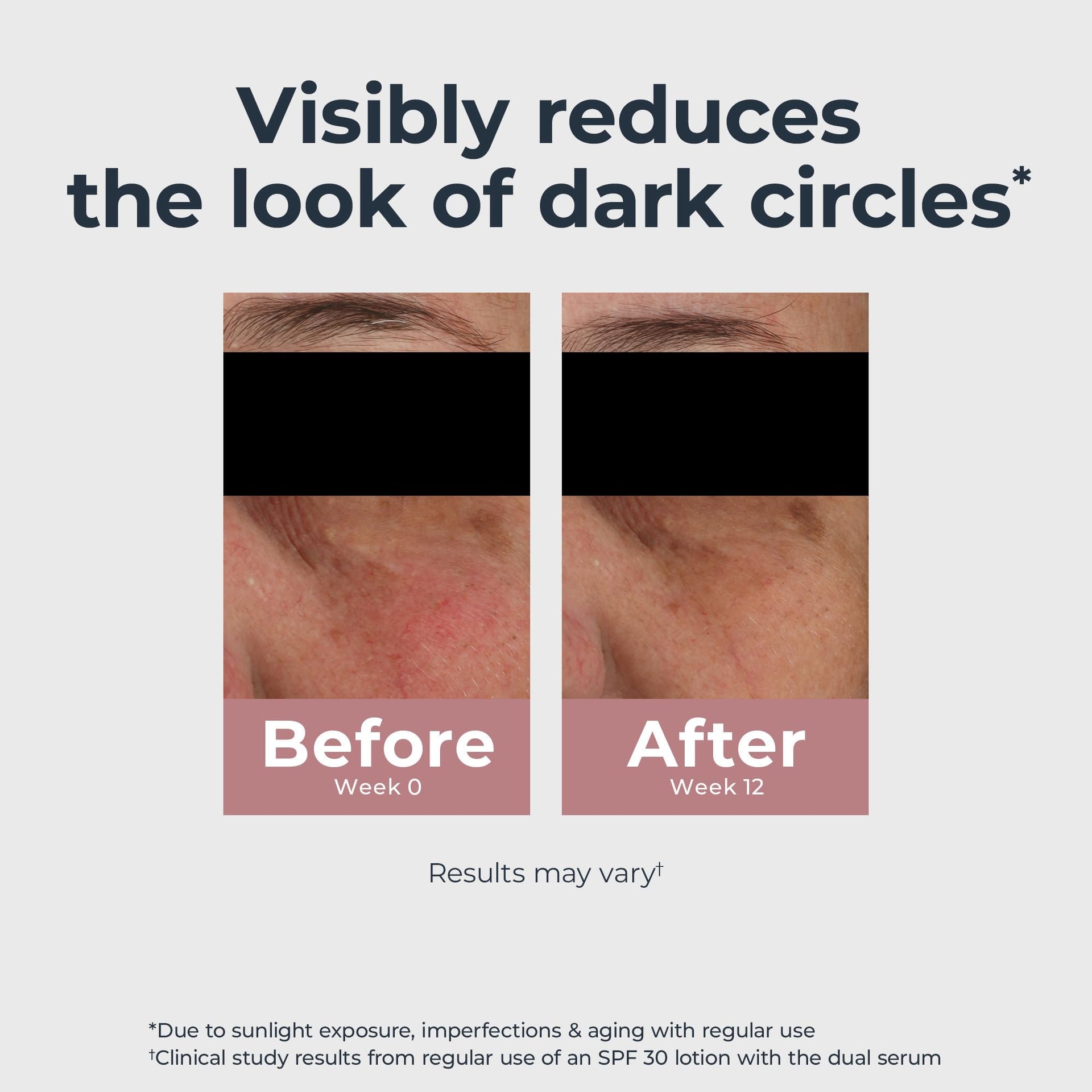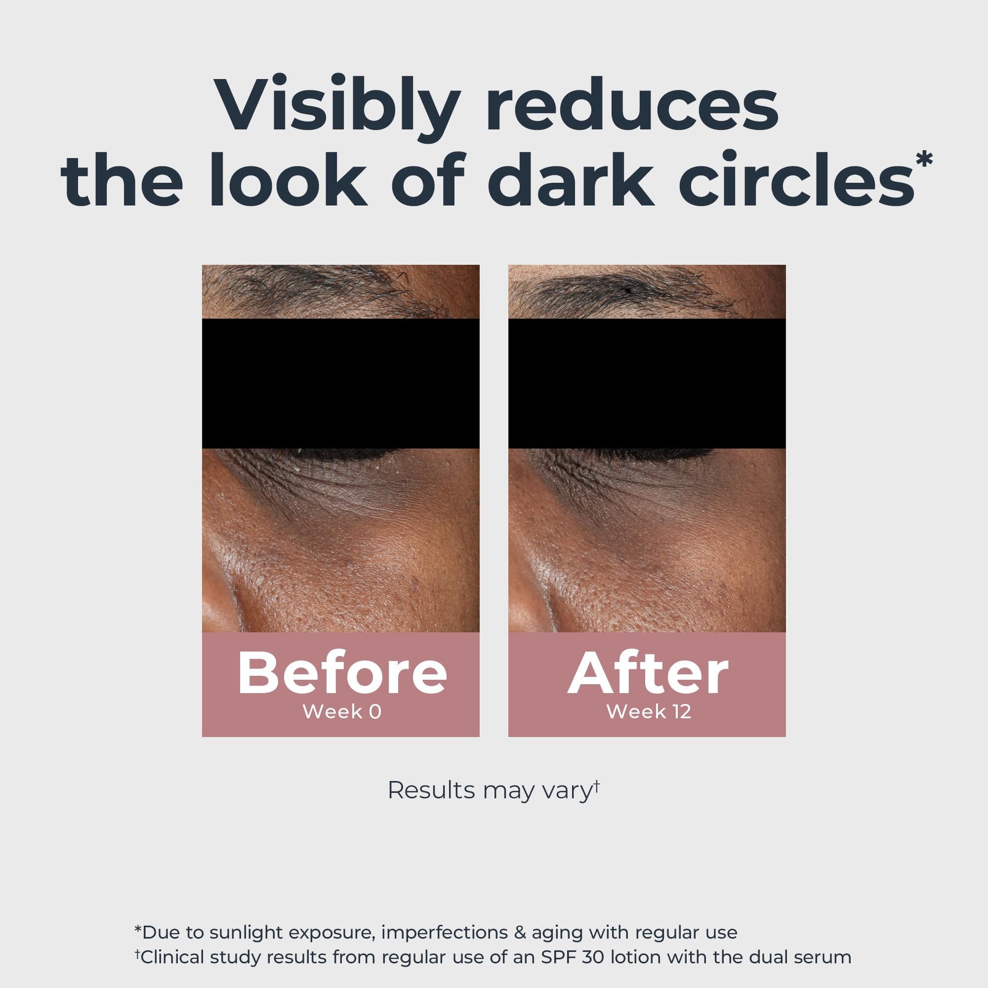 Details: Instantly brighten the eye area and visibly reduce the look of dark circles with Eucerin Radiant Tone Eye Cream Dark Circle Corrector. Enriched with Thiamidol, this dark circle eye cream helps visibly correct the look of dark circles over time with regular use. Light-reflecting pigments instantly deliver a brighter, more illuminated look each time you use this brightening eye cream. Eucerin Radiant Tone Eye Cream Dark Circle Corrector features a cool-feeling metal applicator and Hyaluronic Acid-enriched formula that helps minimize the look of puffy eyes and under eye bags. This brightening eye cream is Ophthalmologist-tested, clinically proven, and suitable for all skin types. Plus, it is lightweight and non-sticky. For the ultimate skin and eye care routine, gently apply this dark circle corrector cream to the under eye area. Limit the collective use of Radiant Tone products to four times a day. Eucerin is a dermatologist-recommended skincare brand that is based on an uncompromising approach to science. With skin care products designed to sustain healthy-looking skin, look to Eucerin to enhance outer beauty and self confidence.