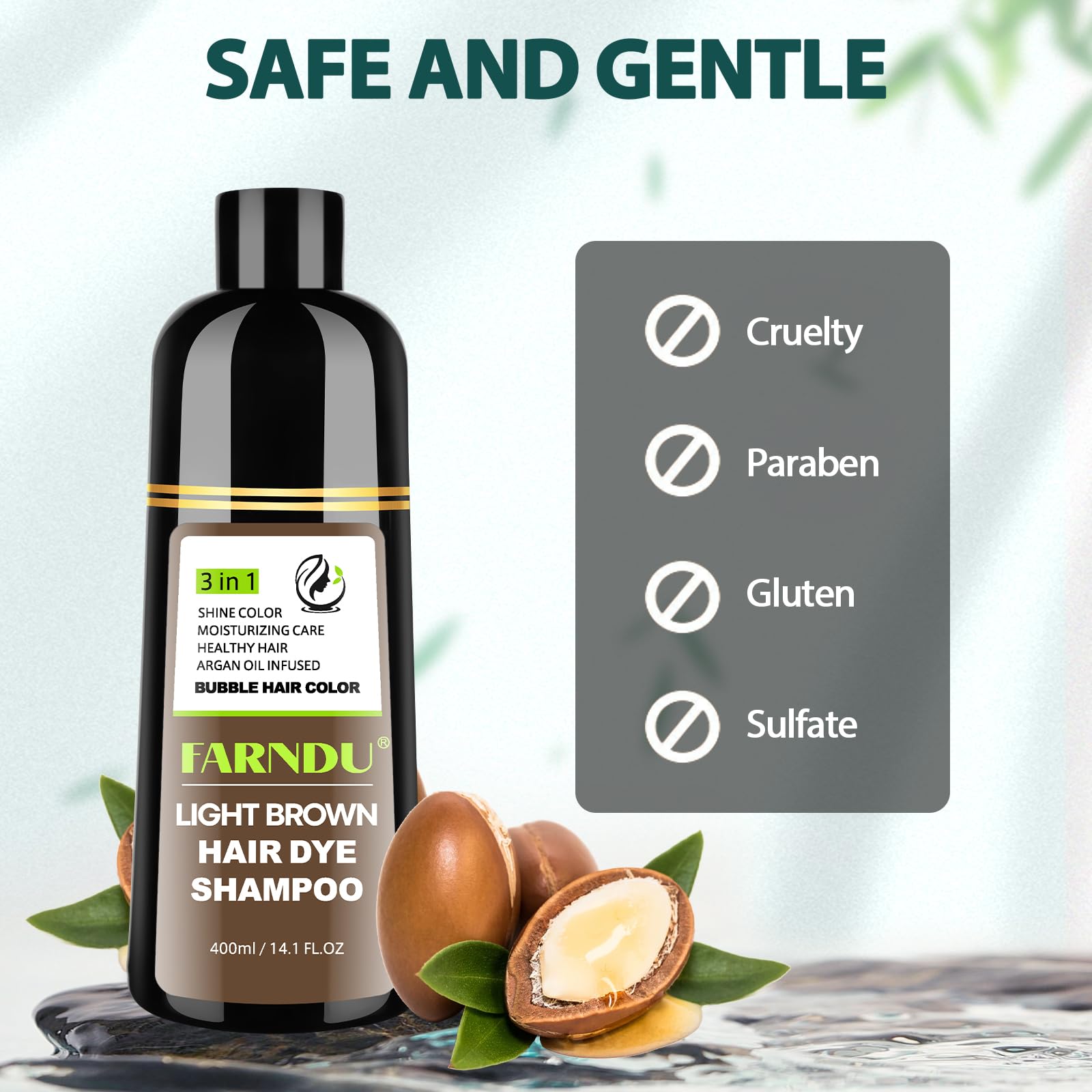 - ✔So Easy, You’ll Love Coloring Your Hair: Ditch the messy bowls and brushes! Use it like your daily shampoo, 1️⃣ Apply to dry hair (no prep needed!). 2️⃣ Massage for 5 minutes. 3️⃣ Wait 10–15 mins—binge a show, sip coffee, you do you! 4️⃣ Rinse and flaunt that natural, vibrant Light Brown!