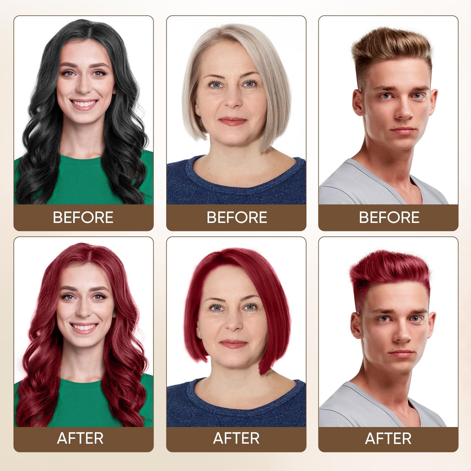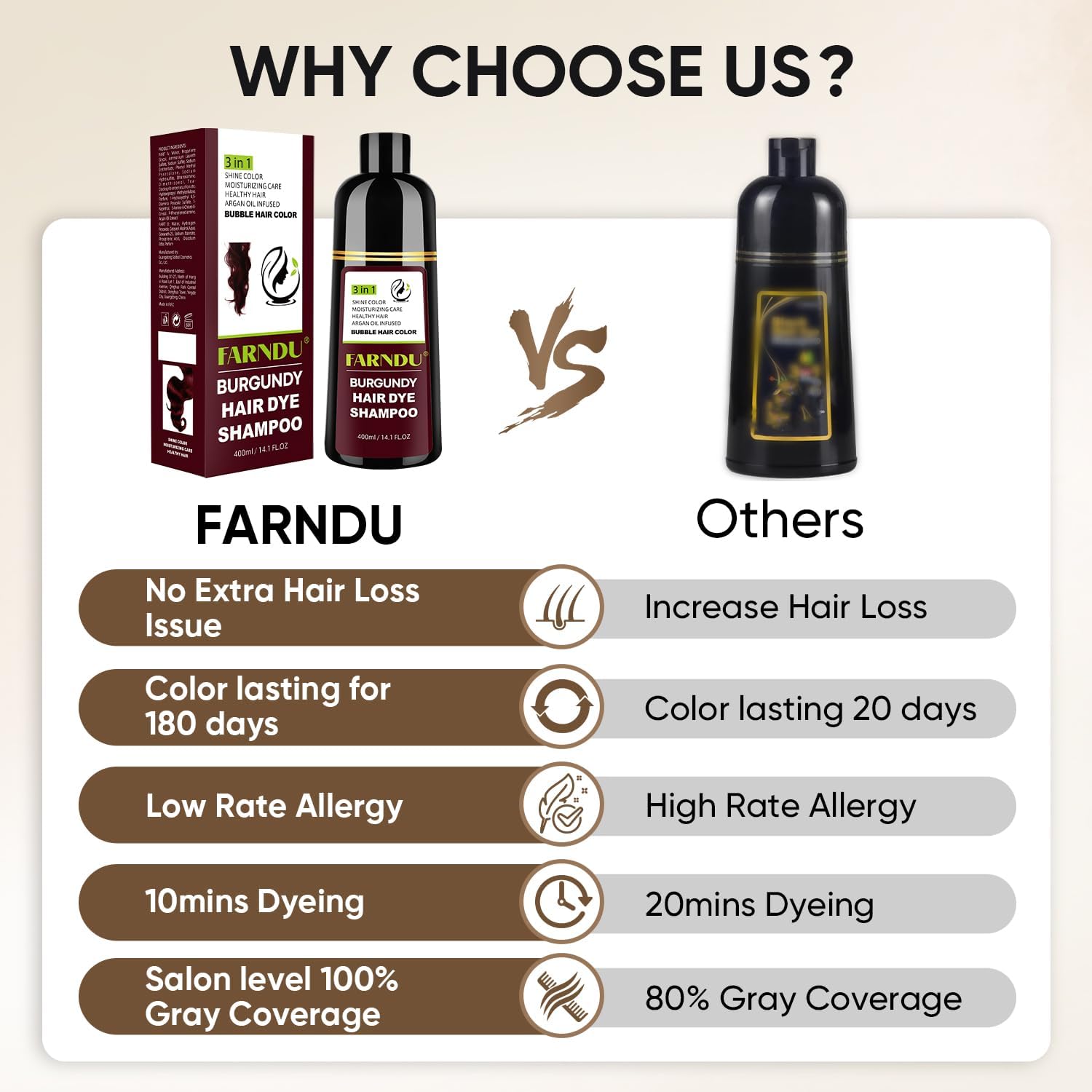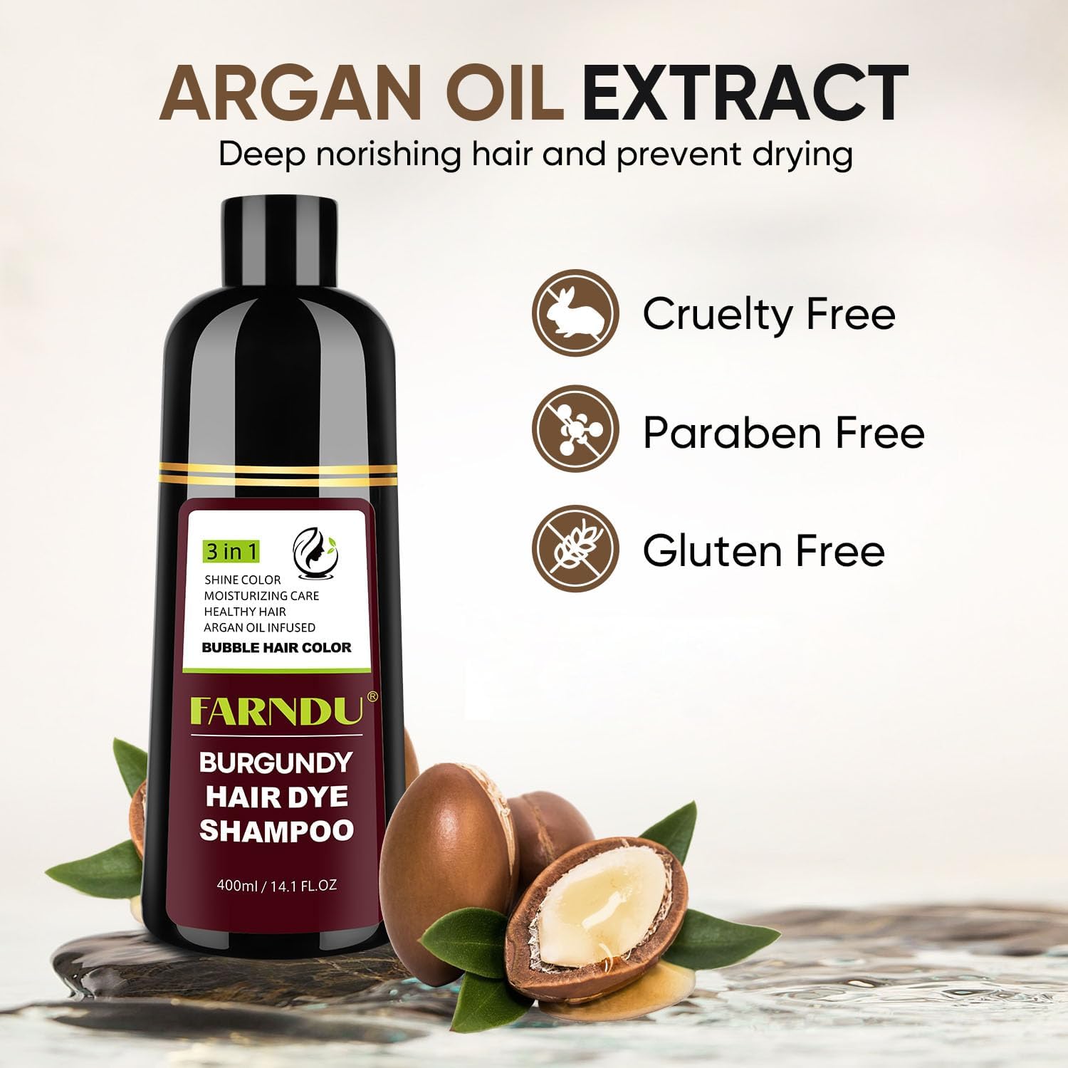 Farndu Red Burgundy Hair Dye Shampoo for Women Men, Hair Color Shampoo Natural Ingredients