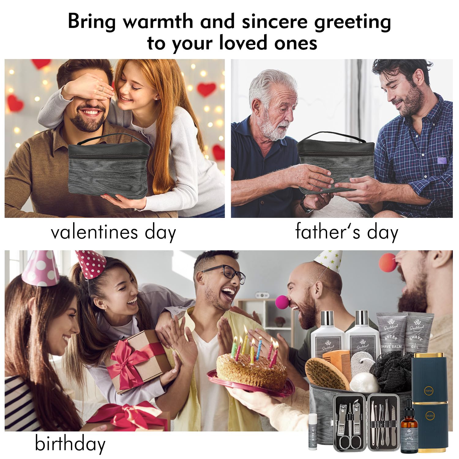 - 【Home Bath Gift Set for Men 】21pcs mens skin care kit contains: beard balm, shave gel, beard oil, beard comb, beard brush, 24k gold bath bomb, bubble bath, shower gel, lip balm, portable toothbrush cup, manicure set, bath puff, pumice, leather cosmetic bag!