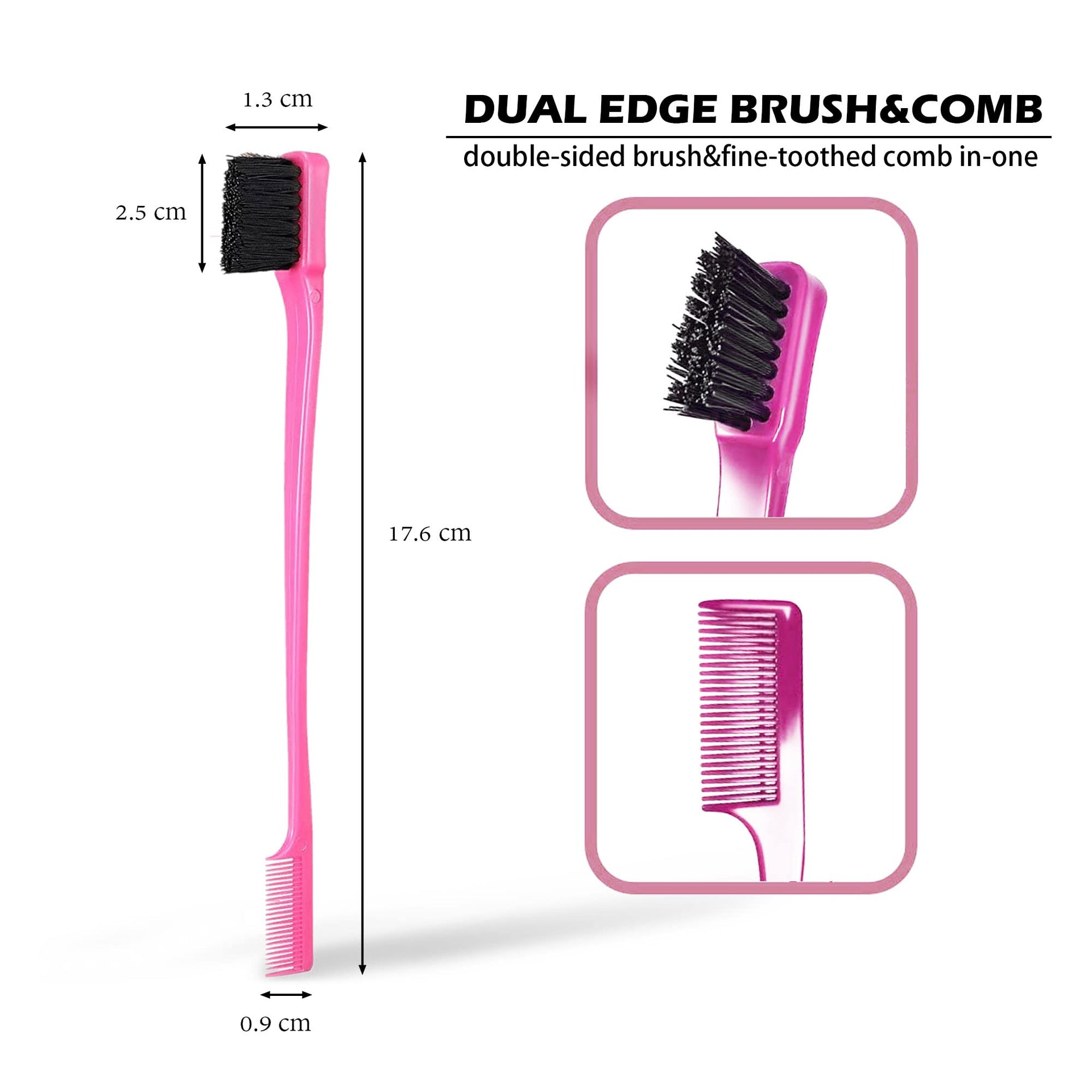 Details: Foxi Fresh Double Sided Edge Control Hair Brush Comb Combo Pack 2 Pieces Pink and Black