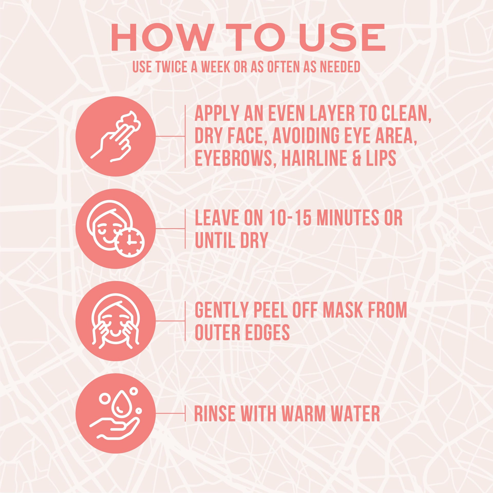 - Peel-off face mask features ingredients that help to remove impurities and detoxify pores for a fresh, radiant complexion. Pink Clay nourishes skin while drawing out impurities