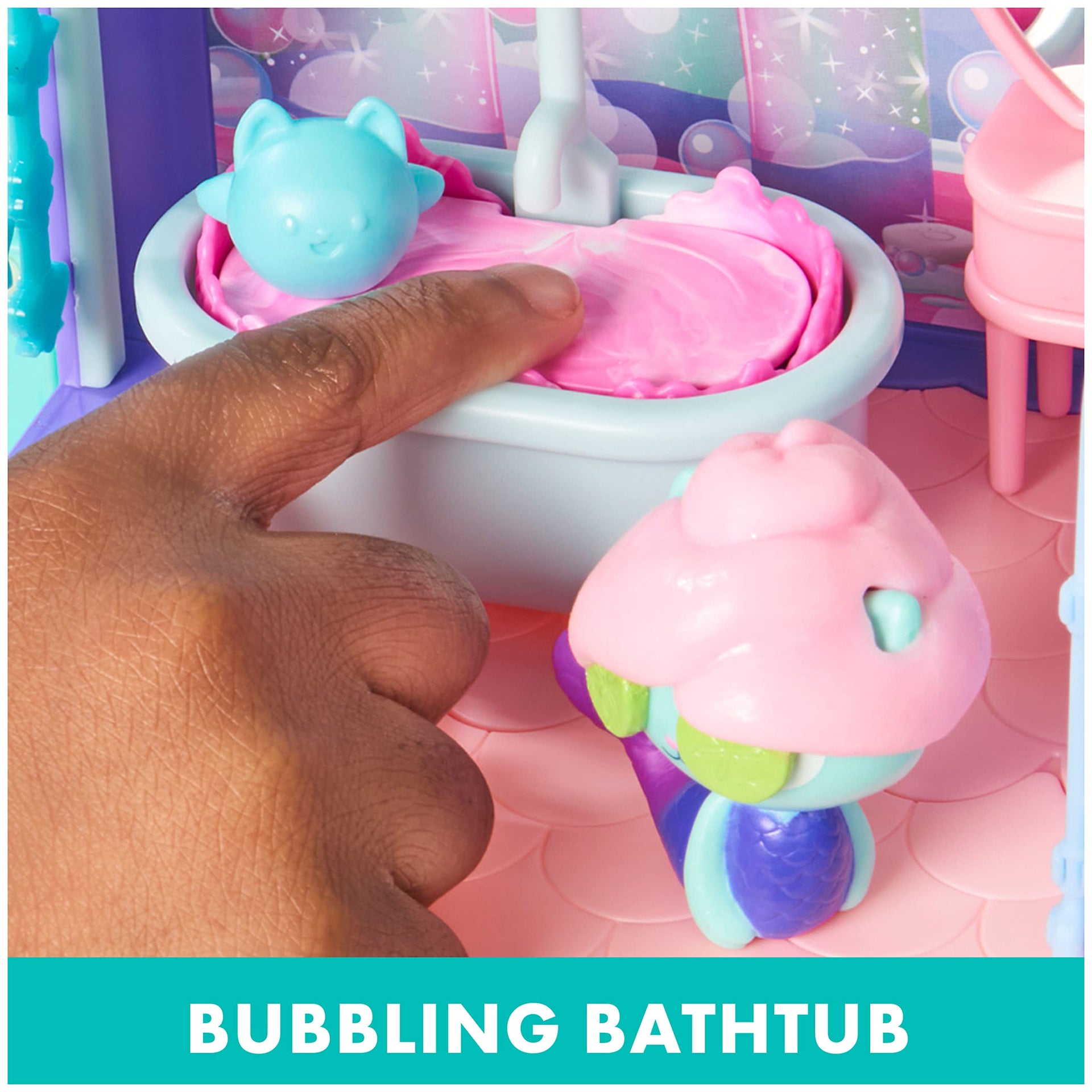 Gabby's Dollhouse, Primp and Pamper Bathroom with Mercat Figure, 3 Accessories, 3 Furniture and 2 Deliveries, Kids Toys for Ages 3 and up