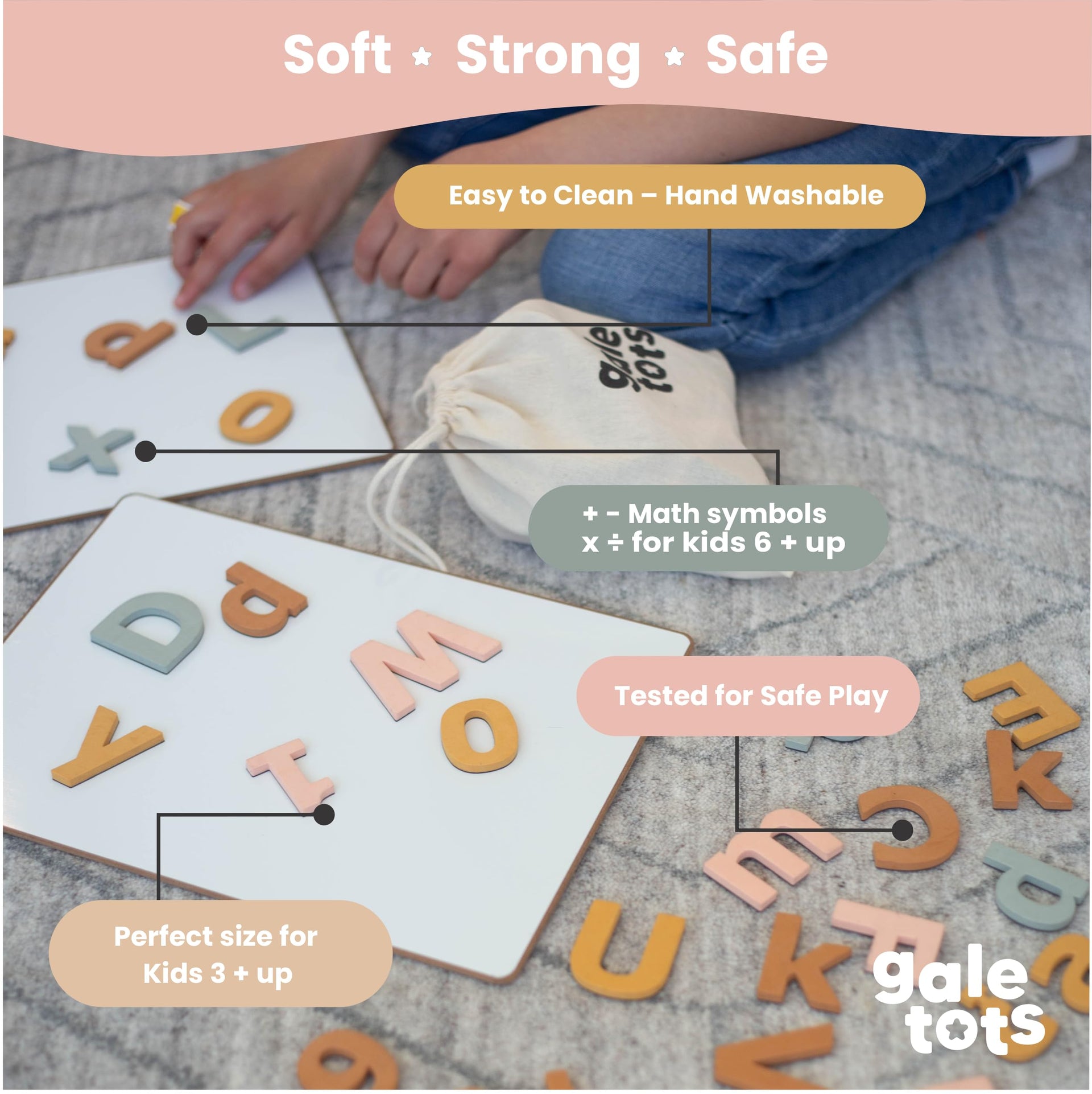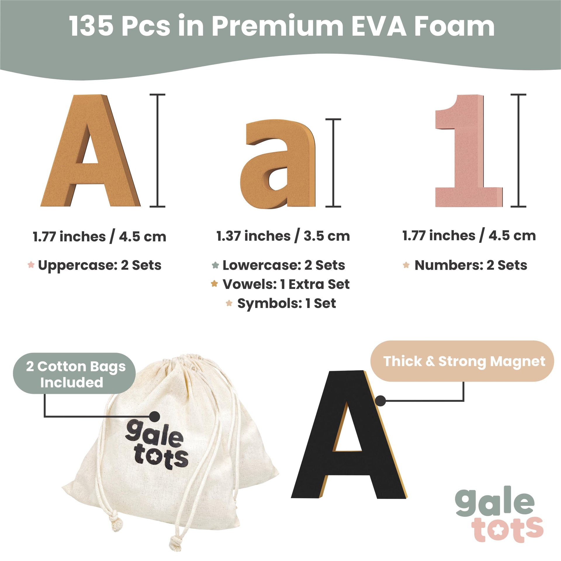 Gale Tots Magnetic Letters and Numbers - 135 PCS Alphabet Magnets in Soft Foam - Neutral Aesthetic Colors ABC Fridge Magnets for Kids