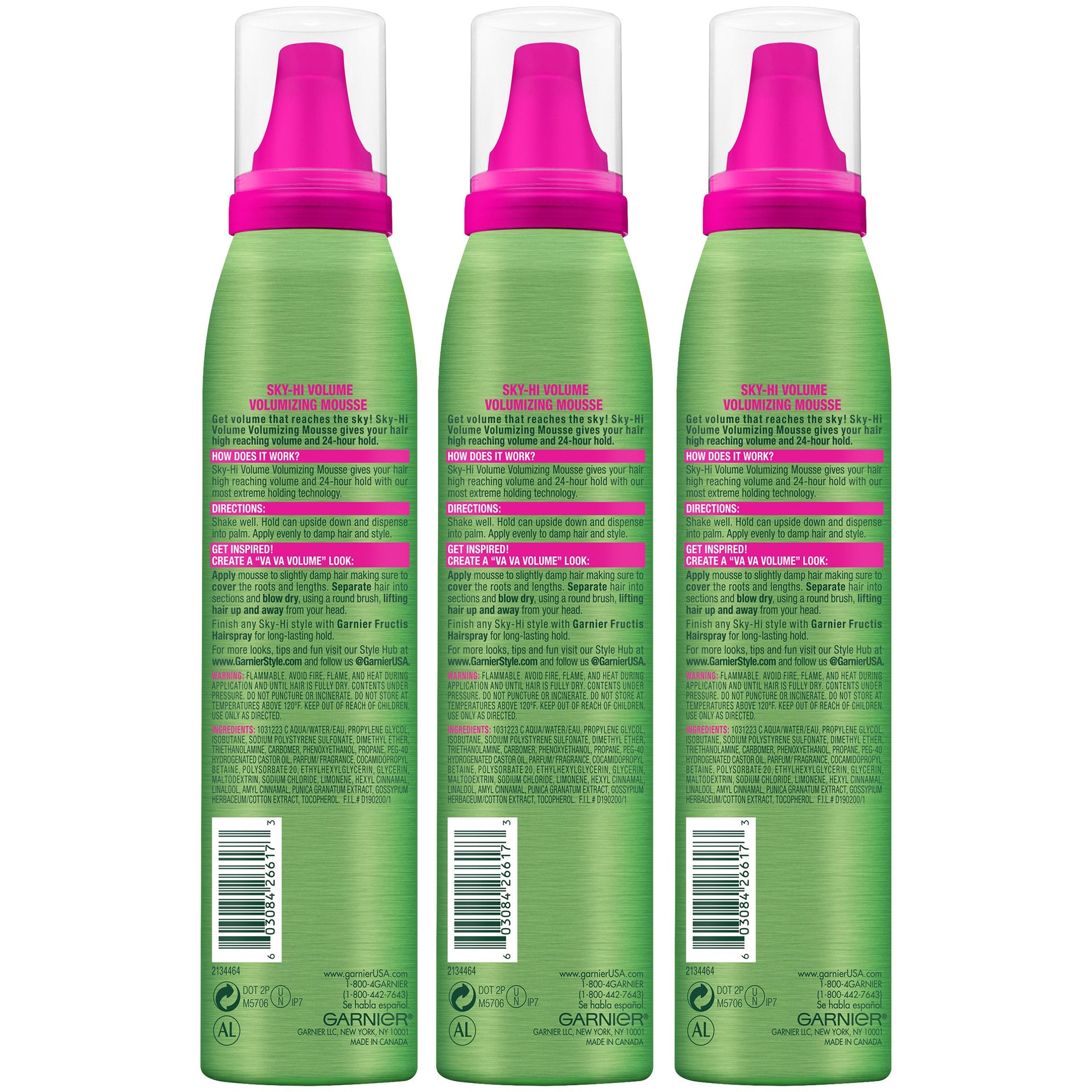 Garnier Fructis Style Sky-Hi Volume Mousse, Extreme Hold, 6.4 Oz, 3 Count (Packaging May Vary)