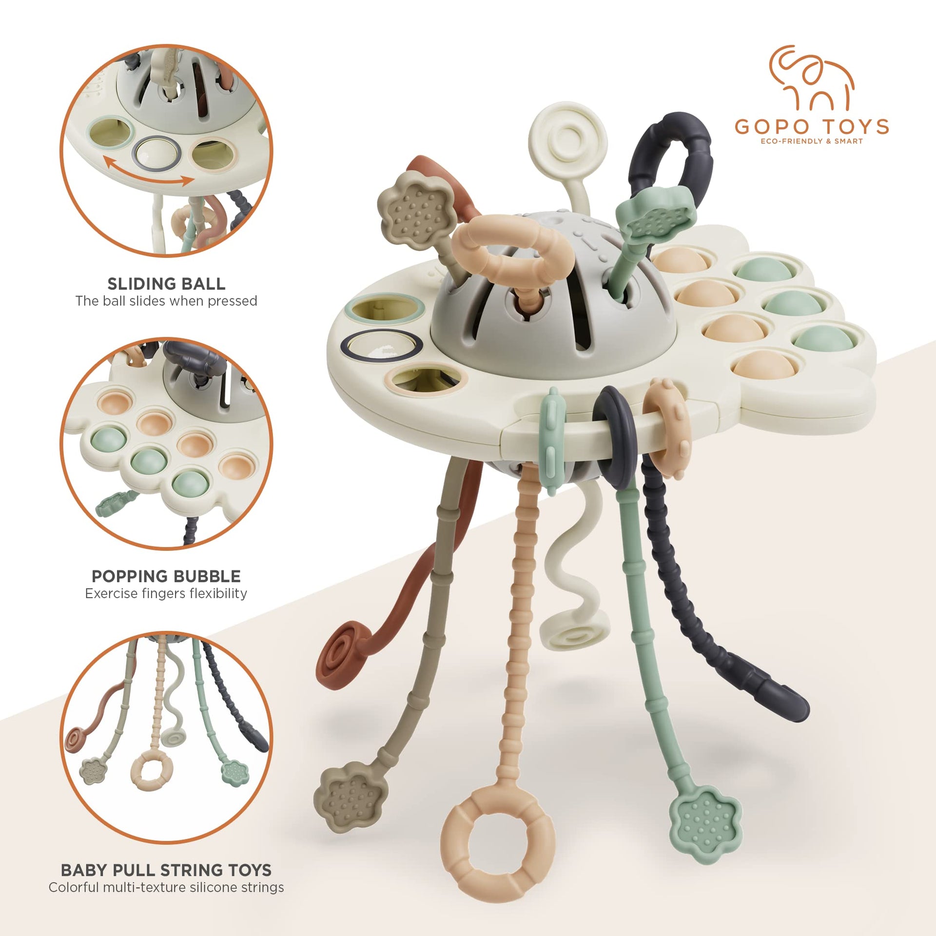 GOPO TOYS Baby Airplane Toy – Montessori Silicone Pull String Fidget for Toddlers 18M+ – Teething & Sensory Travel Toy for Car, Plane & Stroller