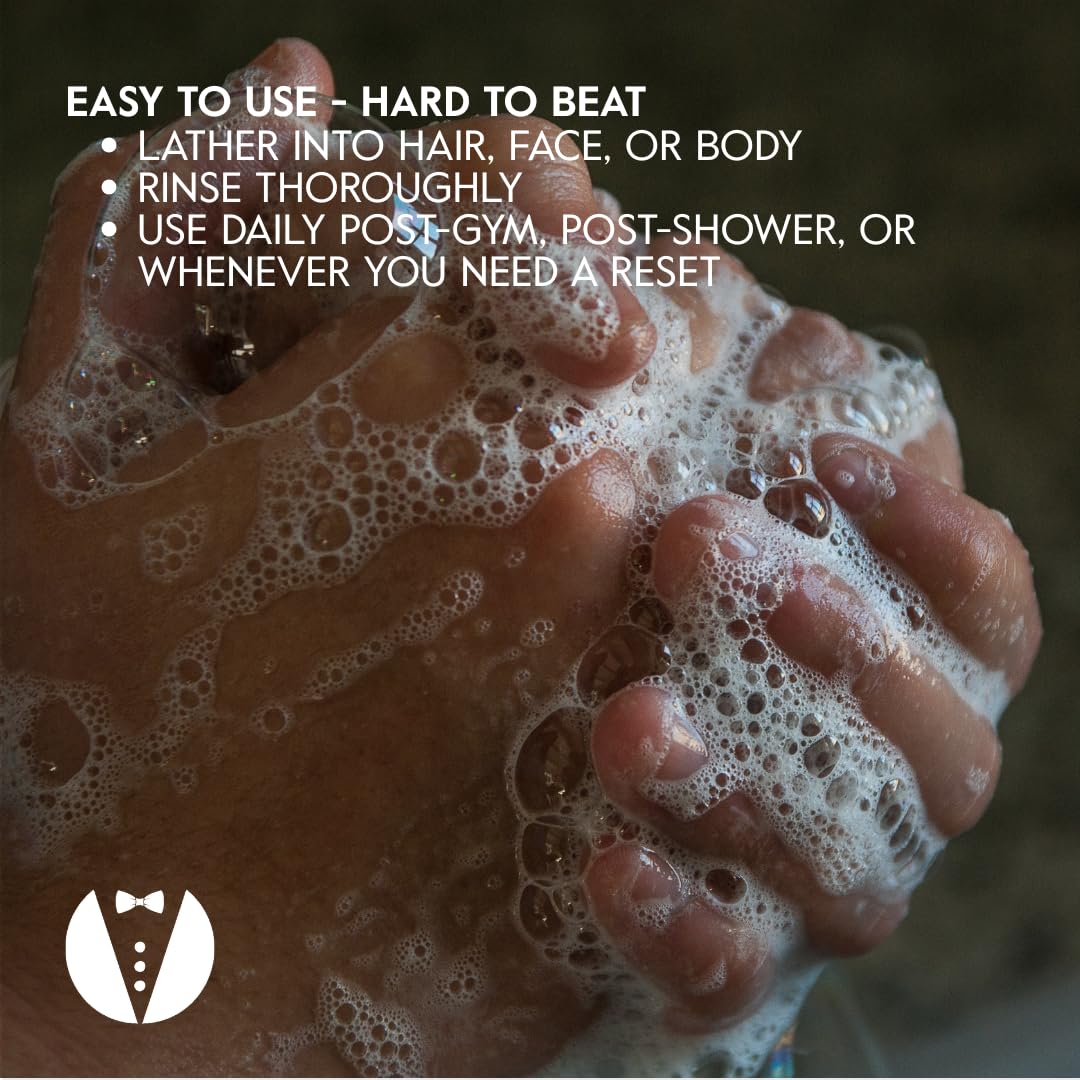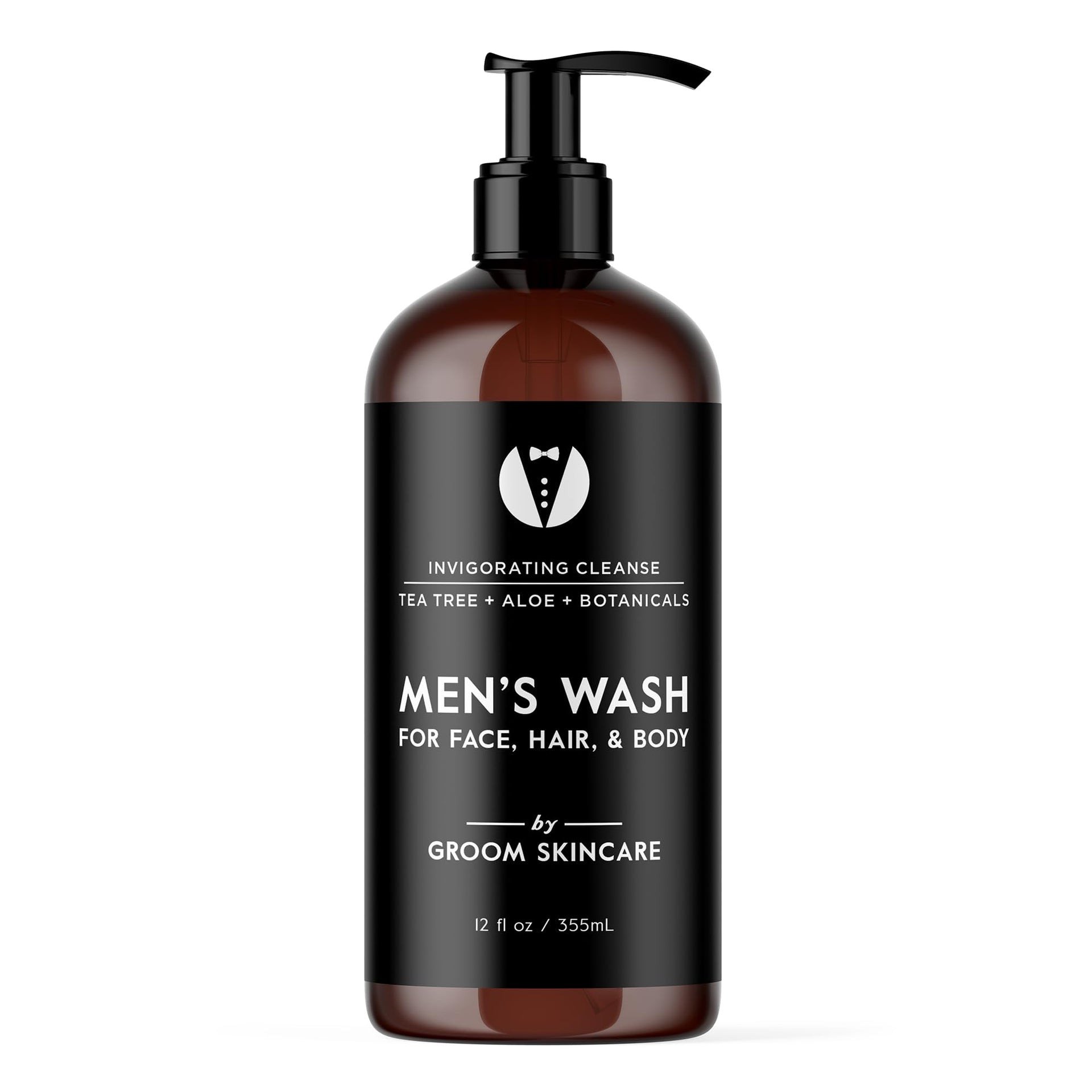 GROOM 3-in-1 Hair, Face & Body Wash for Men – Plant-Based Cleanser with Organic Aloe & Essential Oils – Gentle, Fresh Scent, 12 oz