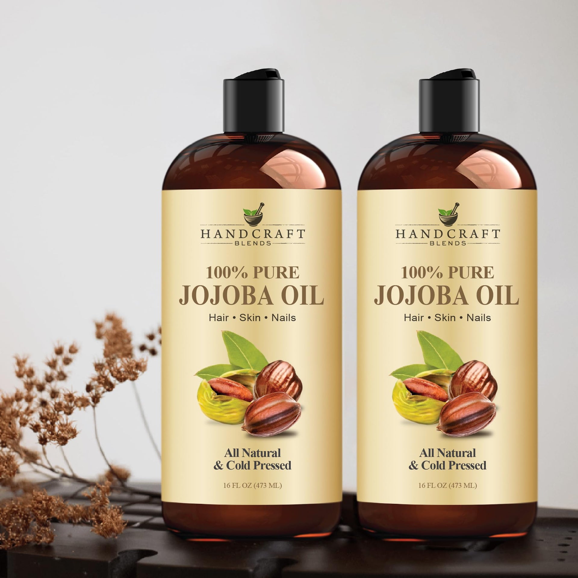 Handcraft Blends 100% Pure Jojoba Oil, Cold-Pressed 16 Fl Oz – Natural Carrier Oil for Skin, Hair & Body Massage – Hexane-Free, Curl Relaxer