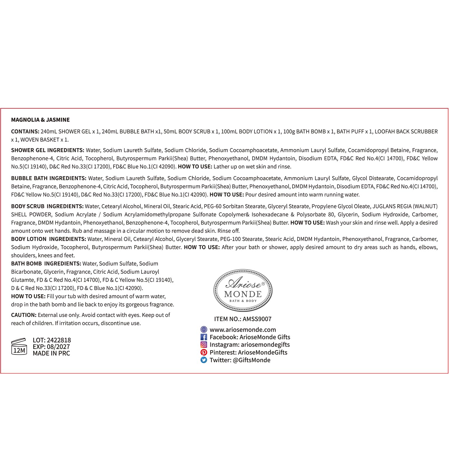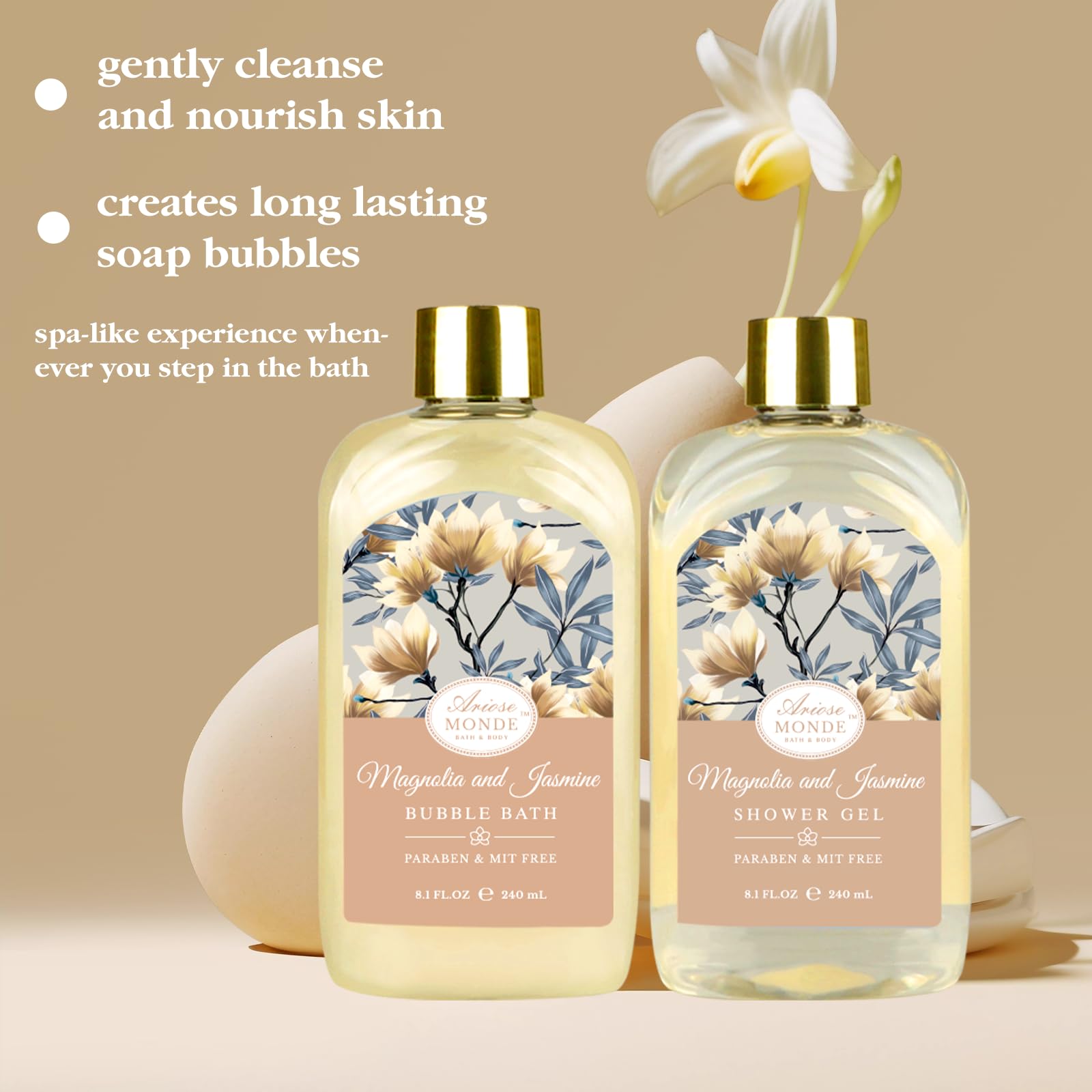- SWEET & COMFORTING SCENT. This classic fragrance captures the essence of rich Magnolia and Jasmine, when taking a bath, you are sure to be fascinated by this intoxicating flora notes. Suitable for a relaxing bath or a rejuvenating shower, enhancing your daily self-care routine