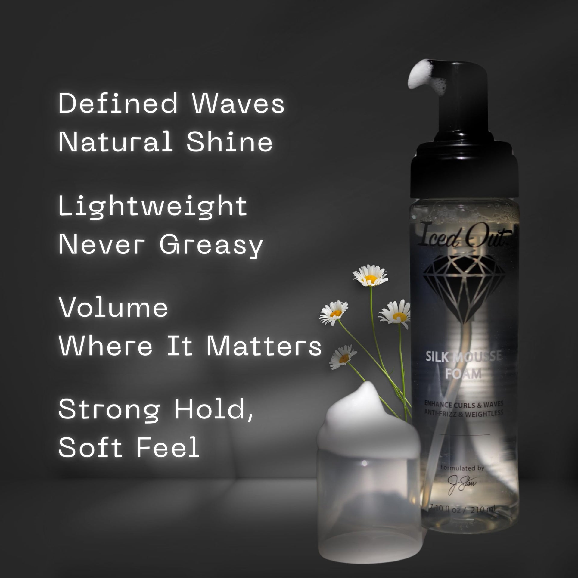 Iced Out Silk Mousse Foam – Volumizing & Curl Enhancing Hair Mousse for Men & Women, Frizz Control, Shine Boost, Long-Lasting Hold, 7.10 fl oz