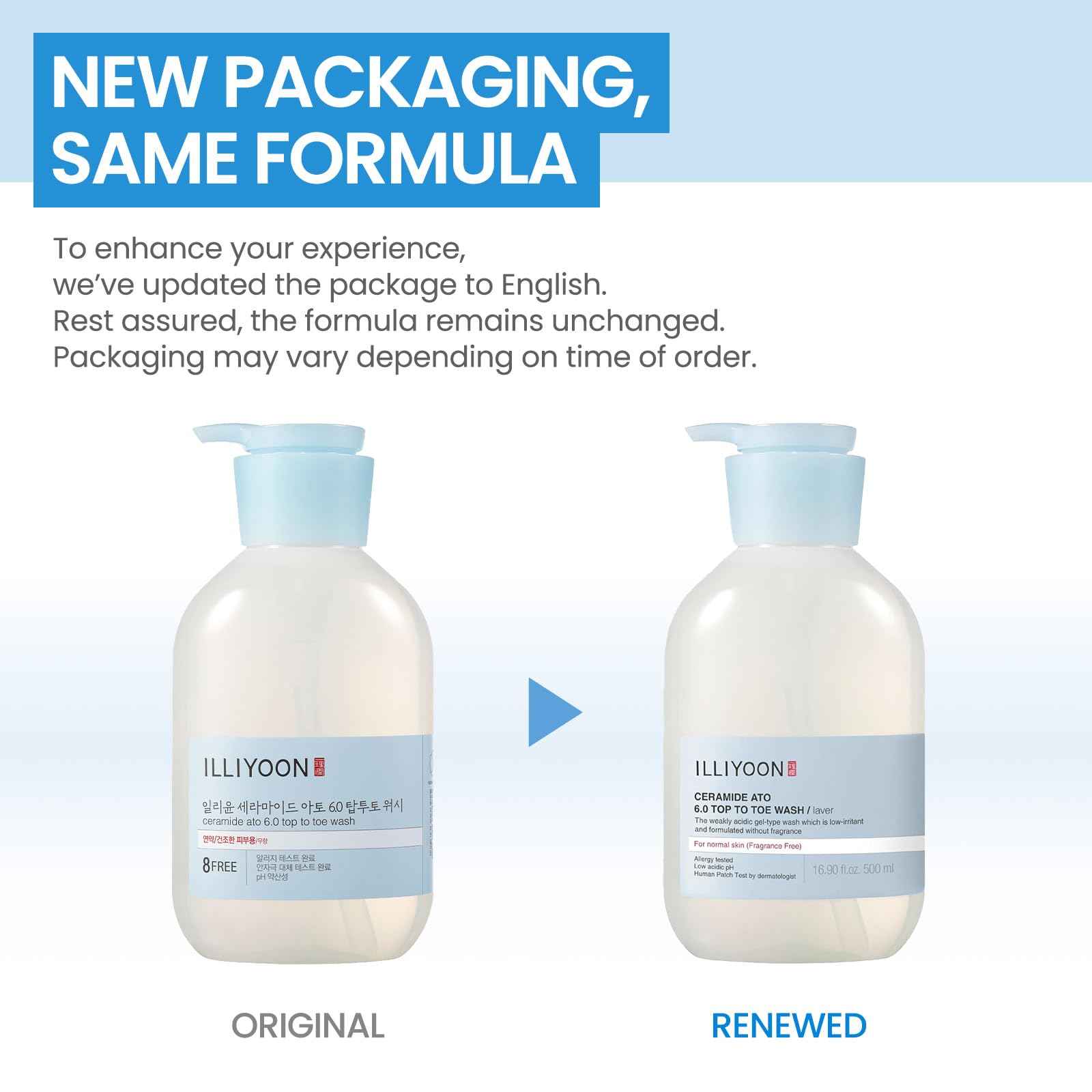 Illiyoon Ceramide Ato 6.0 Top to Toe Wash - Mild Cleanser for Baby body, 16.9 Fl Oz (500ml)