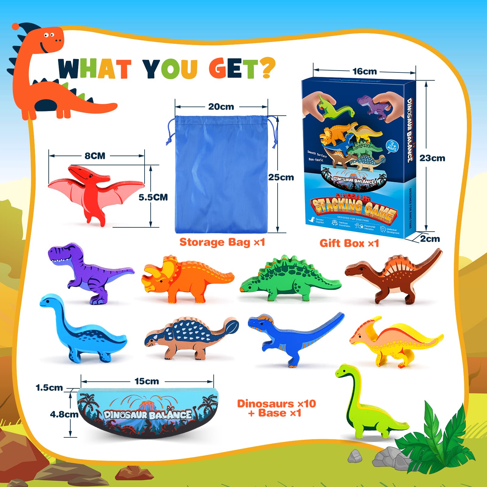 IPOURUP Dinosaur Wooden Stacking Toys for Kids 3-8 – Montessori Balance Game, Educational Fun, Birthday & Christmas Gifts