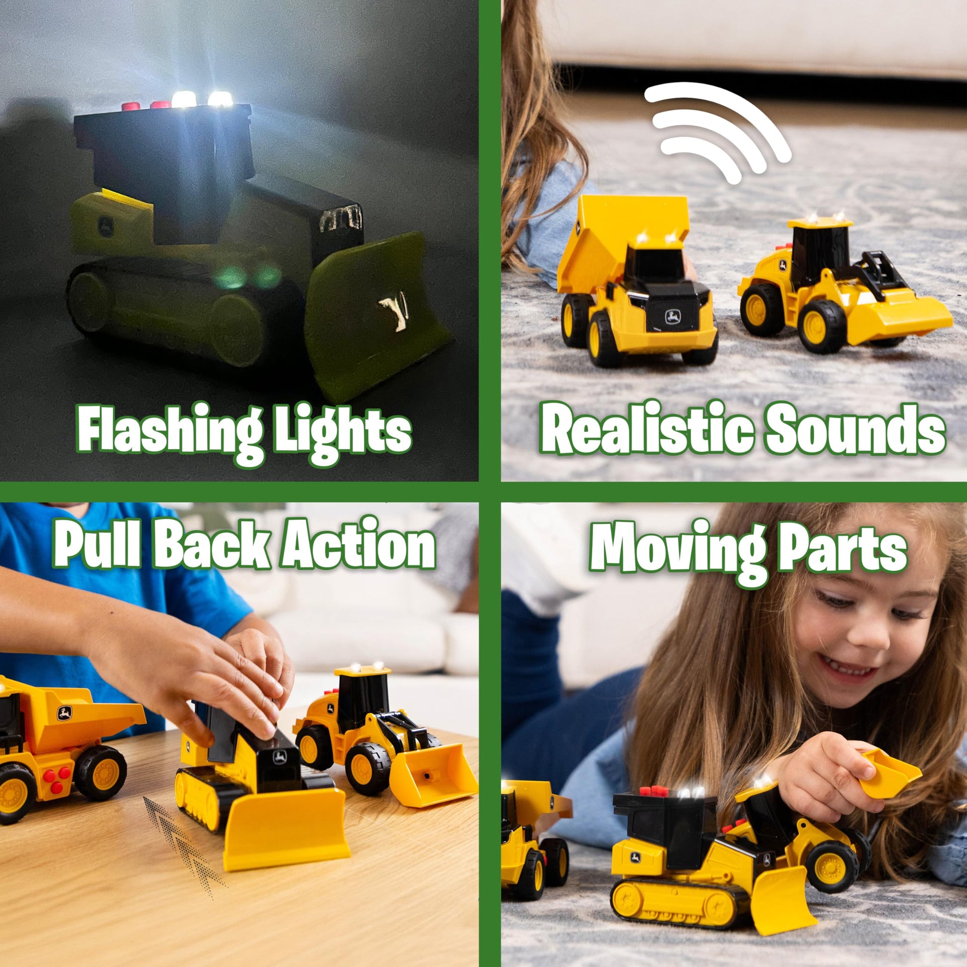 John Deere 3-Pack Set Realistic Lights and Sound 5" Farm Construction Vehicles