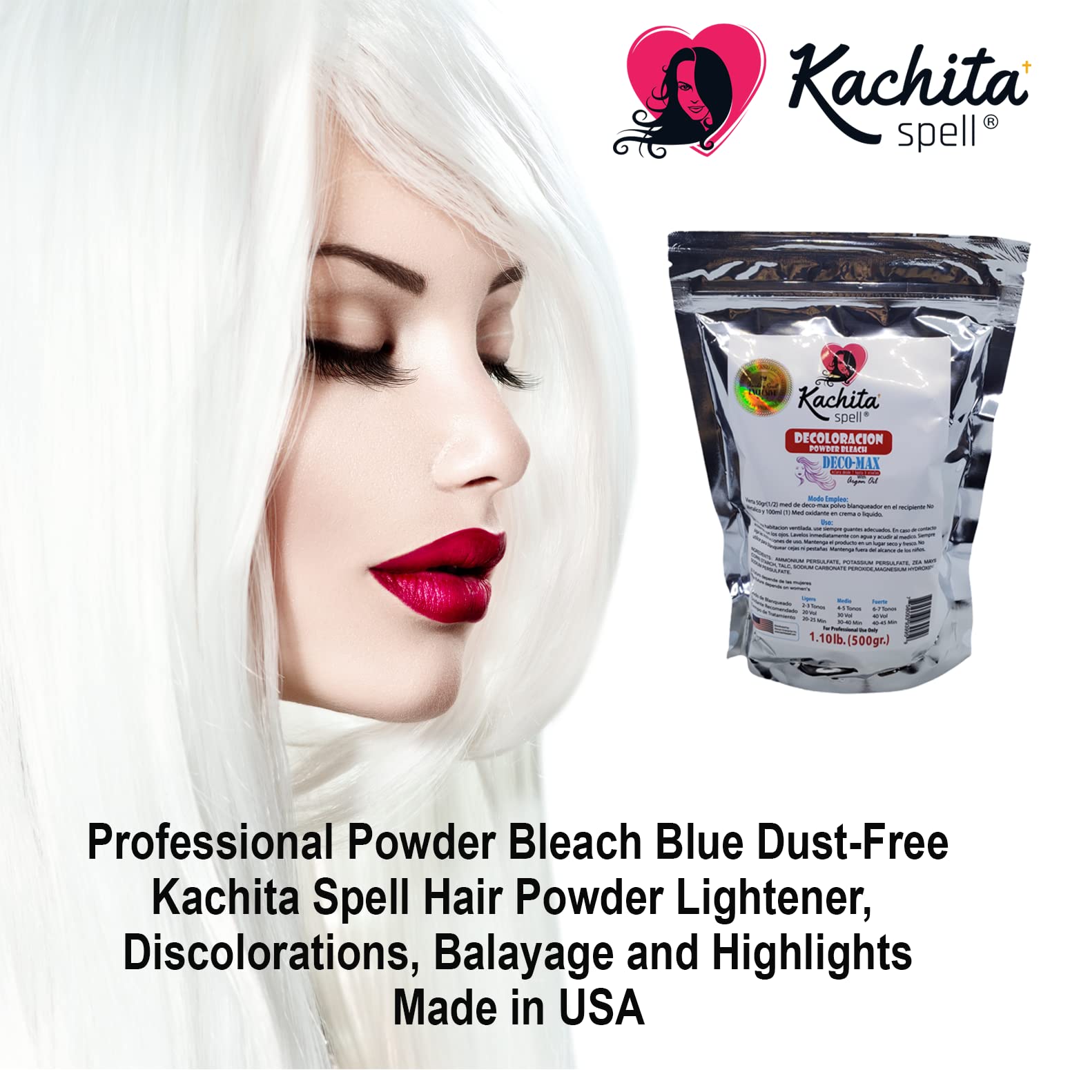 Details: Are you looking for the best professional hair bleach? Look no further than Kachita Spell Powder Bleach Blue Deco-Max. Excellent for Discolorations, balayage and Highlights, get a Perfect Blond Hair. This dust-free powder from Kachita Spell delivers controlled lightening (from 7 to 9 levels), making it ideal for all-over bleaching, highlights, balayage or just to knock out dark root re-growth. Thanks to its protective oil system, it helps lock in moisture, a major win since bleaching can lead to seriously dry strands. Kachita Spell Deco-Max Dust-Free Lightener Powder Bleach is fast acting, Argan Oil Enriched Rich Protecting oil System, Dust-Free, Non-Drip Concentrated Formula and allows full control of the speed, power and gentleness of lift. Total lift control is achieved with the use of any 20, 30 or 40 Volume Cream Hydrogen Peroxide ( Developer ). This dust-free Superior Lightening Powder product mixes quickly into a smooth, creamy consistency allowing for easy application in Discolorations, balayage and Highlights. Superior Lightening Powder Powerful enough for fast off-scalp highlighting, yet gentle enough to be used for on-scalp application. Achieve any lift without unnecessary damage to the hair if it is apply in the right way. Become in a Perfect Blond Hair.