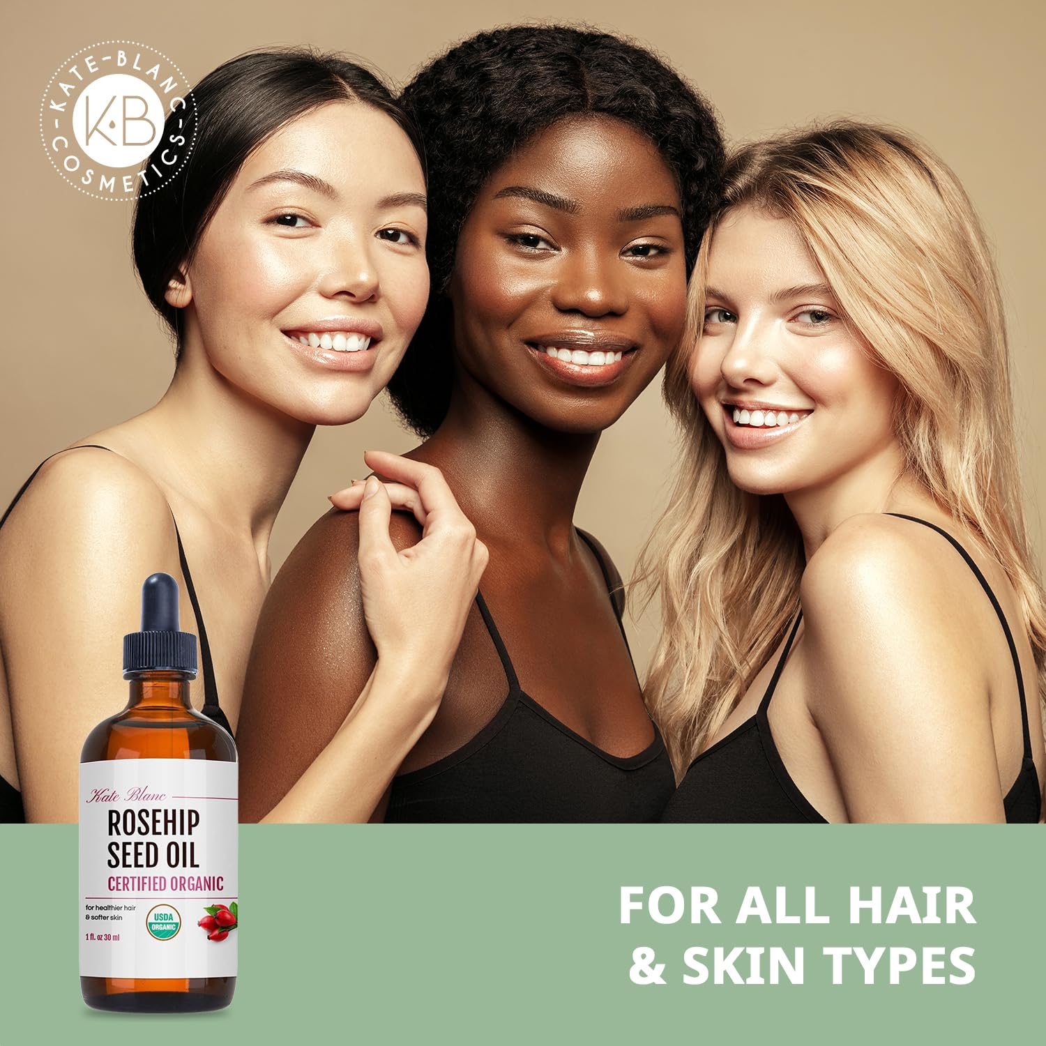 Kate Blanc Cosmetics Rosehip Oil for Face & Softer Glowing Skin (1oz, Organic, Pure, Cold Pressed) Rosehip Seed Face Oil for Facial & Gua Sha Massage