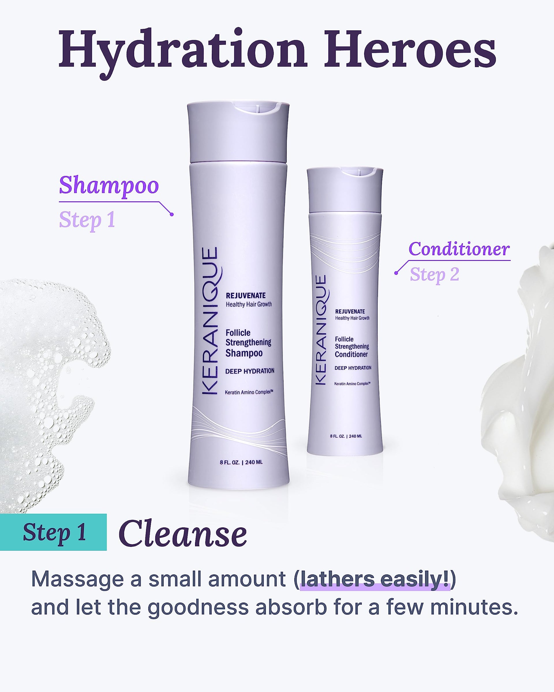 Keranique Deep Hydration Scalp Stimulating Shampoo for Thinning Hair, 8 Fl Oz
