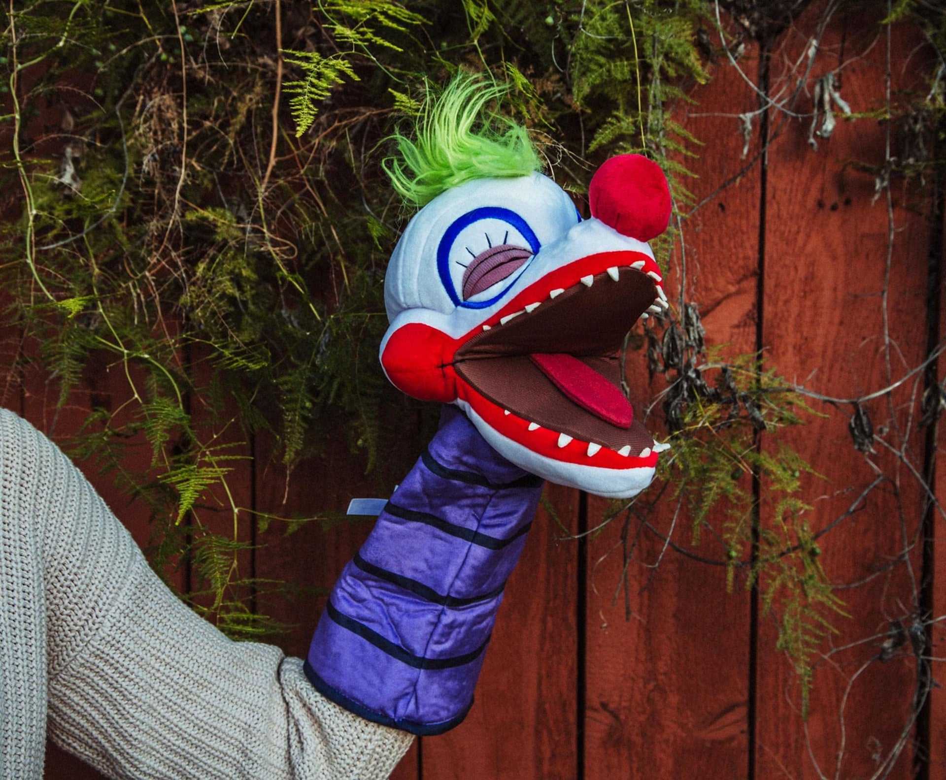 Details: You'll wonder how they grow up so fast with this exclusive collector's plush puppet launching right out of the horror classic Killer Klowns From Outer Space. What did one puppet say to another? You look like you could use a hand. This bloodthirsty offspring popped out of some popcorn, appearing as a creepy hand puppet inspired by Crescent Cove's newest visitor. You'll regret volunteering for babysitting duties when you find out you'll need to take care of this little one. Maybe these Killer Klowns are just visiting Crescent Cove to find a quiet place to raise their kids. Nope, they're definitely here for murder and mayhem and brought the kids along to join in their terrifying fun. Add to the thrills and chills with your puppeteering skills, all while this tiny terror encourages you to do your worst. Let's give these Klowns a hand with this officially licensed collectible from the bizarre '80s horror movie Killer Klowns From Outer Space.