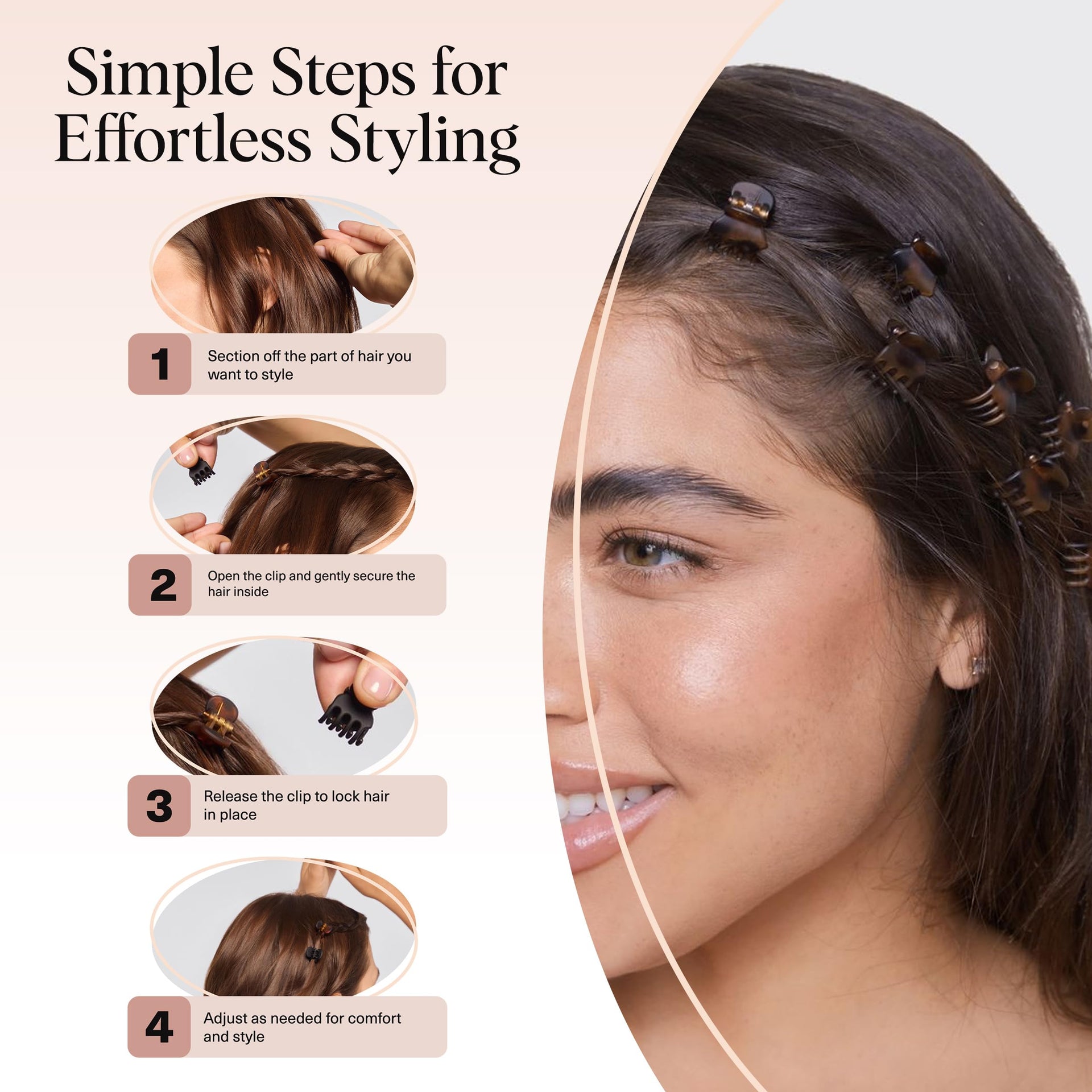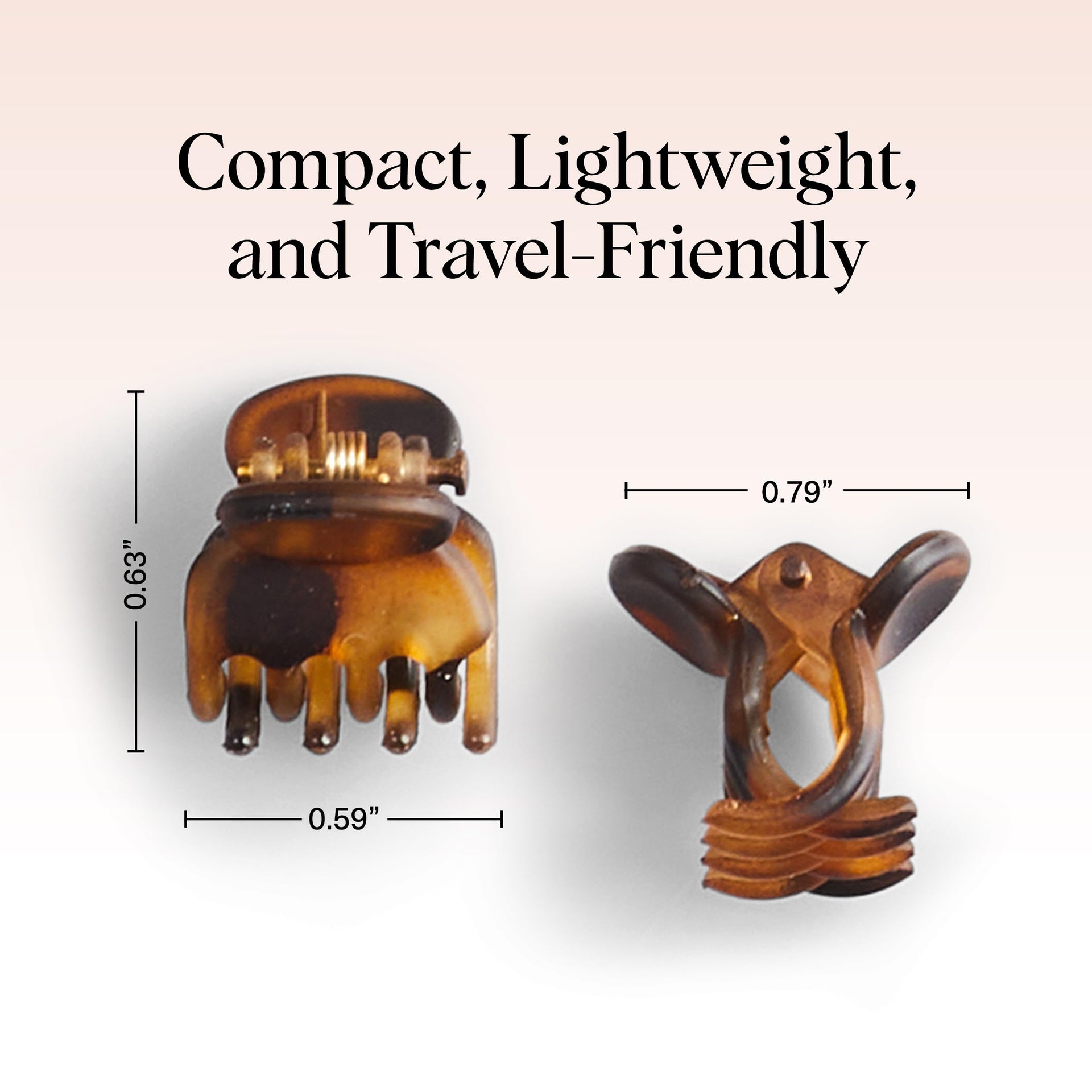 - PORTABLE AND CONVENIENT: Compact and easy to carry, these mini hair clips for hair are the ultimate on-the-go solution. Toss them into your purse, gym bag, or backpack and always have a reliable styling option ready. With their sustainable construction and practical size, small claw clips become your everyday must-have accessory.