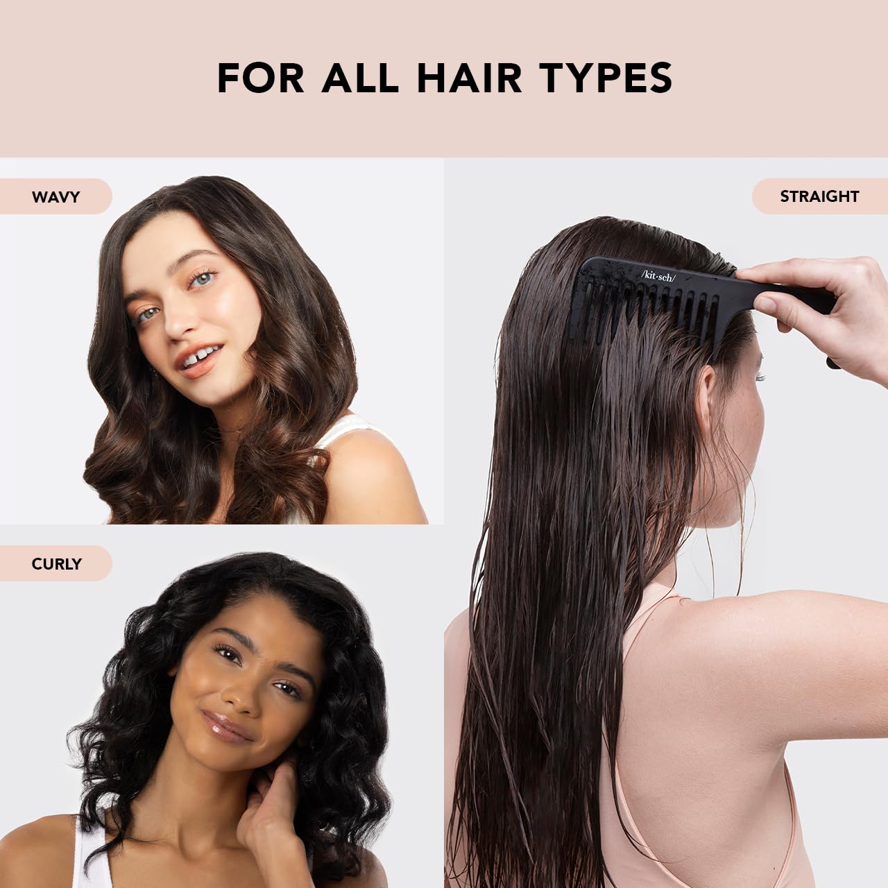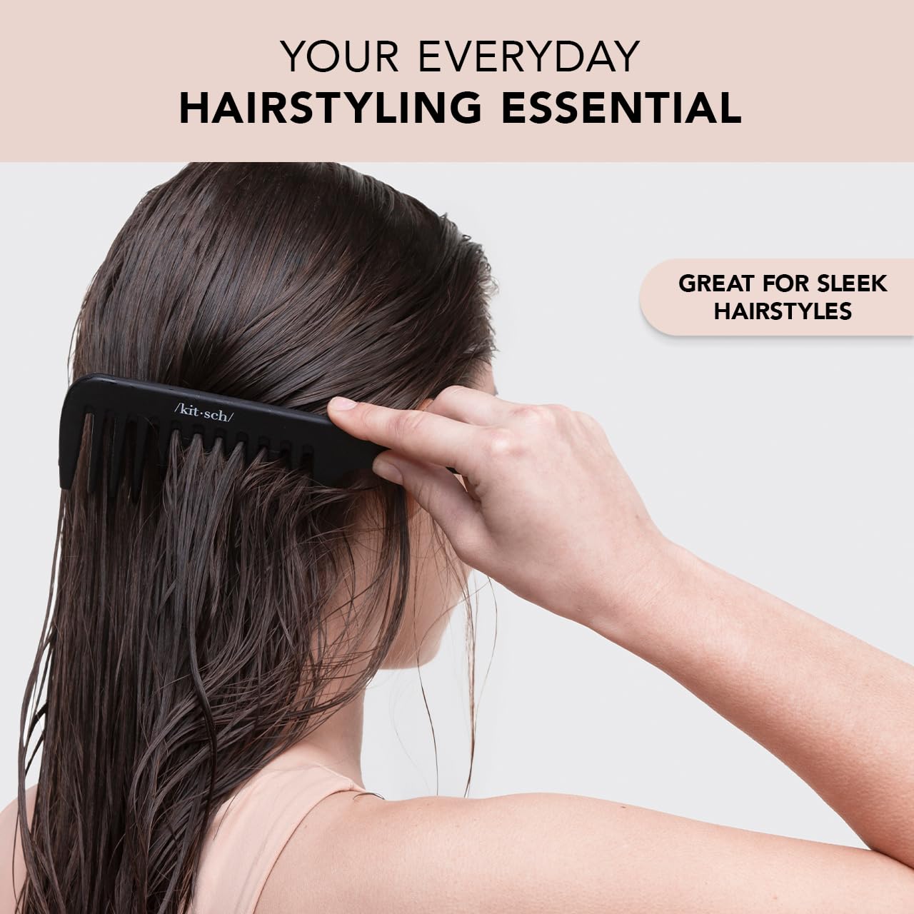 Kitsch Wide Tooth Detangler Comb - Curved Handle for Curly, Wet & Thick Hair, Black Shower Comb for Women