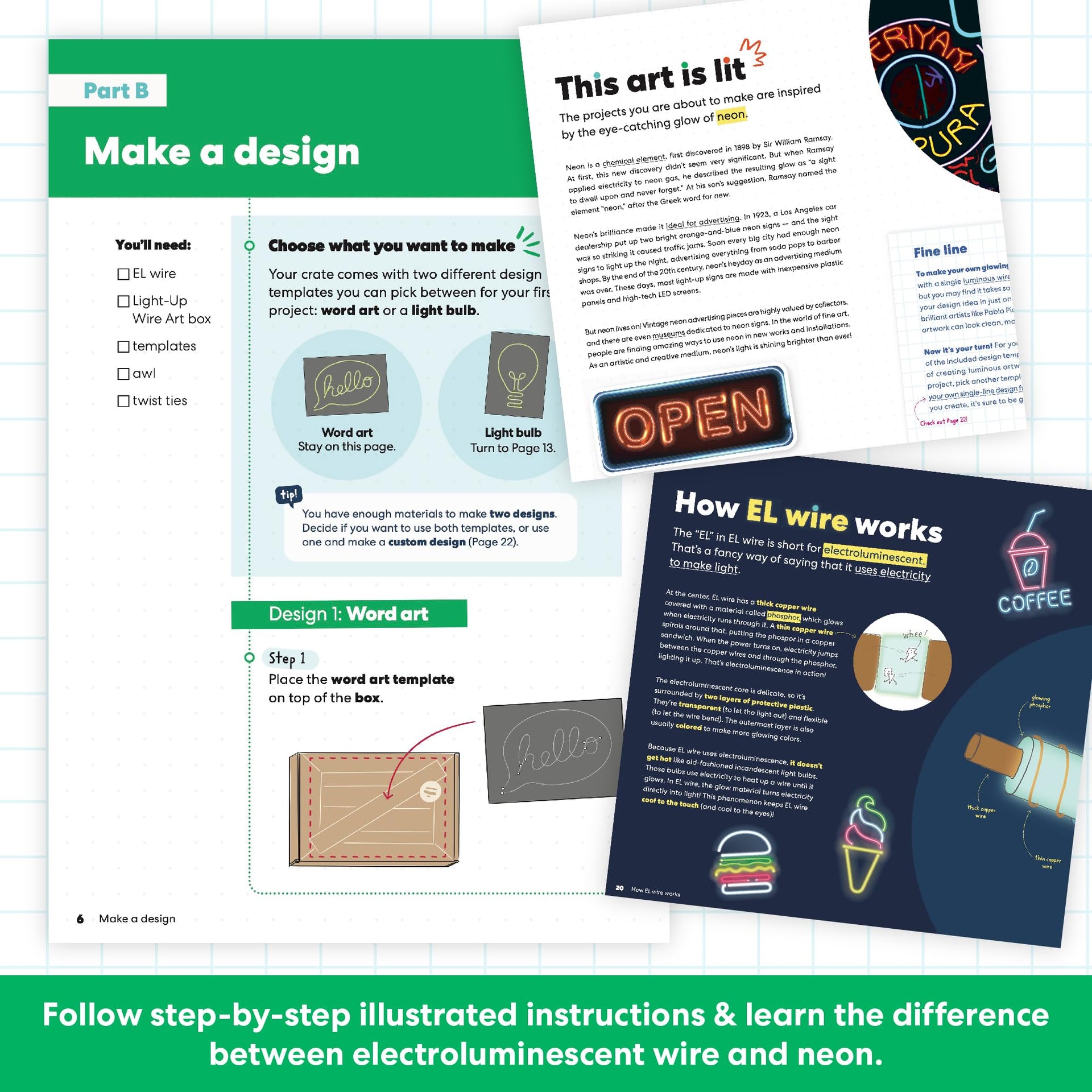 KiwiCo Light-Up Wire Art Kit – DIY Electroluminescent Signs for Kids | EL Wires, Battery Packs, Templates & Instructions Included