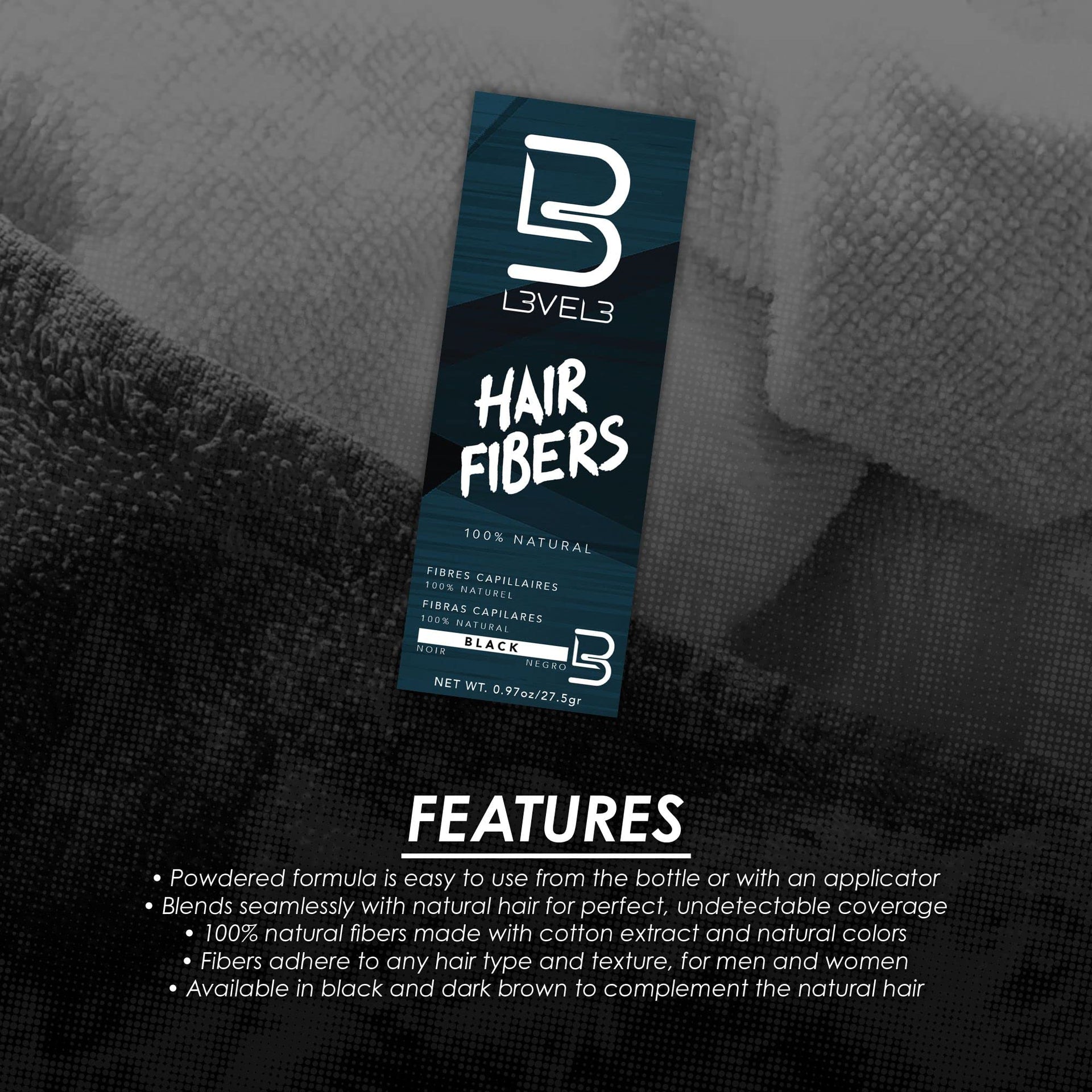 L3 Hair Fibers - Cover Bald Spot or Thinning Hair - Natural Looking Finish - Instant Grey Coverage and Thicker Hair (Black)
