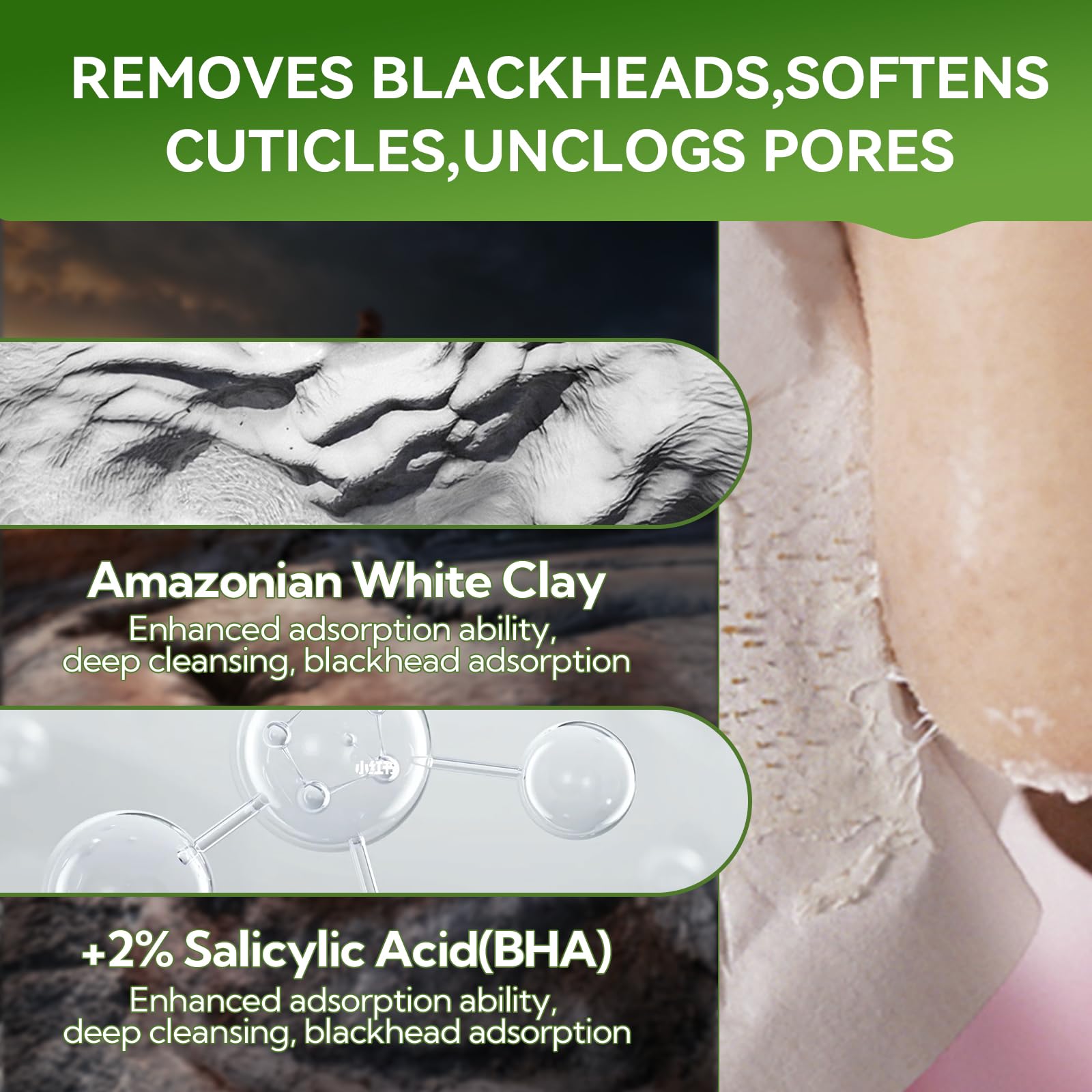 LANBENA 2.0 Blackhead Remover Nose Strips, 60pcs Peel-Off Mask with Salicylic Acid & Amazonian White Clay for Deep Pore Cleansing
