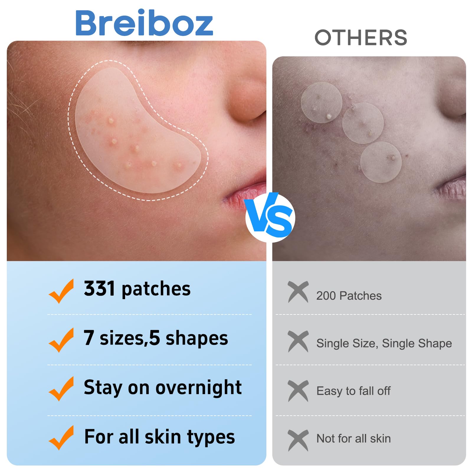 Large Acne Pimple Patches for Face – 331 Hydrocolloid Spots, 7 Sizes, Tea Tree, Salicylic Acid & Cica Oil, Big Spot Covers