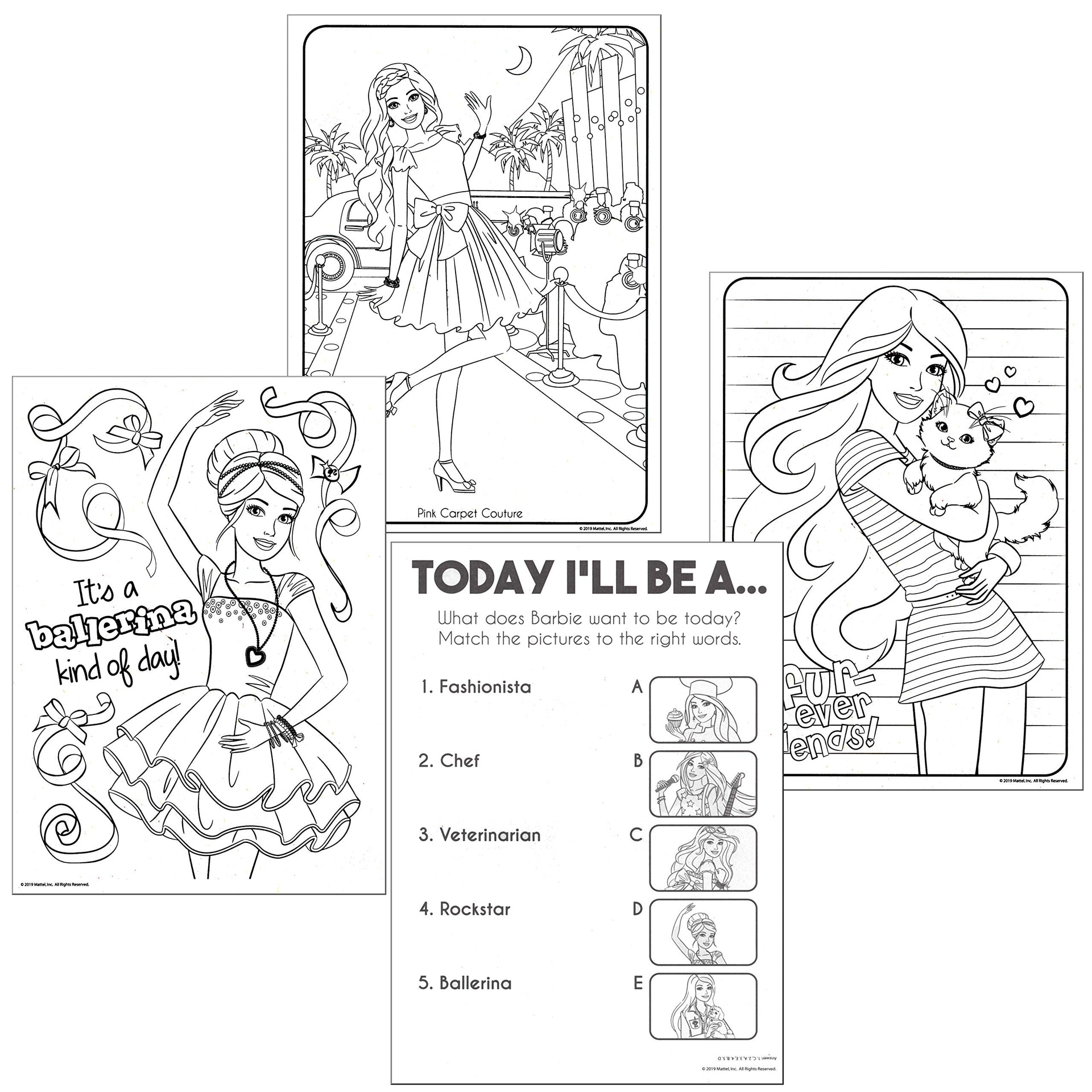 - This Barbie coloring book will provide many hours of fun with games, puzzles, mazes, and coloring activities.