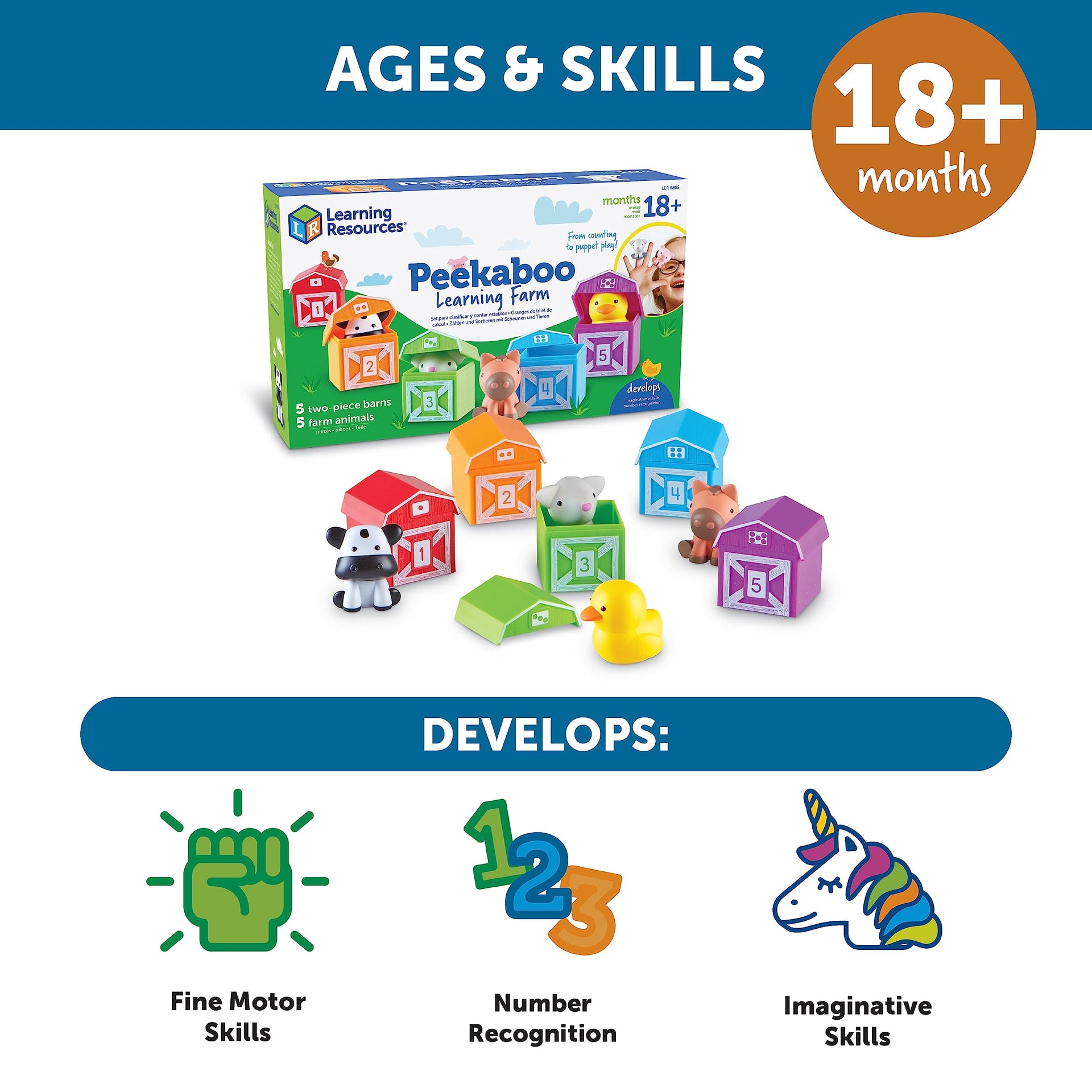 Learning Resources Peekaboo Learning Farm - 10 Pc Toddler Toy Set, Ages 18+ Months, Counting & Sorting Farm Animals, Educational Stocking Stuffer