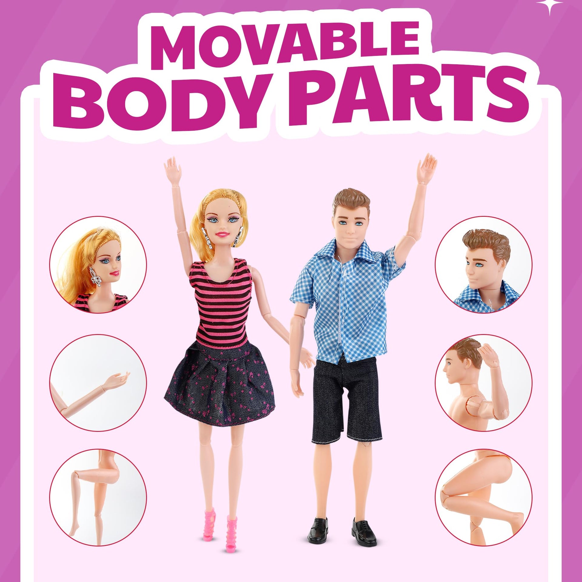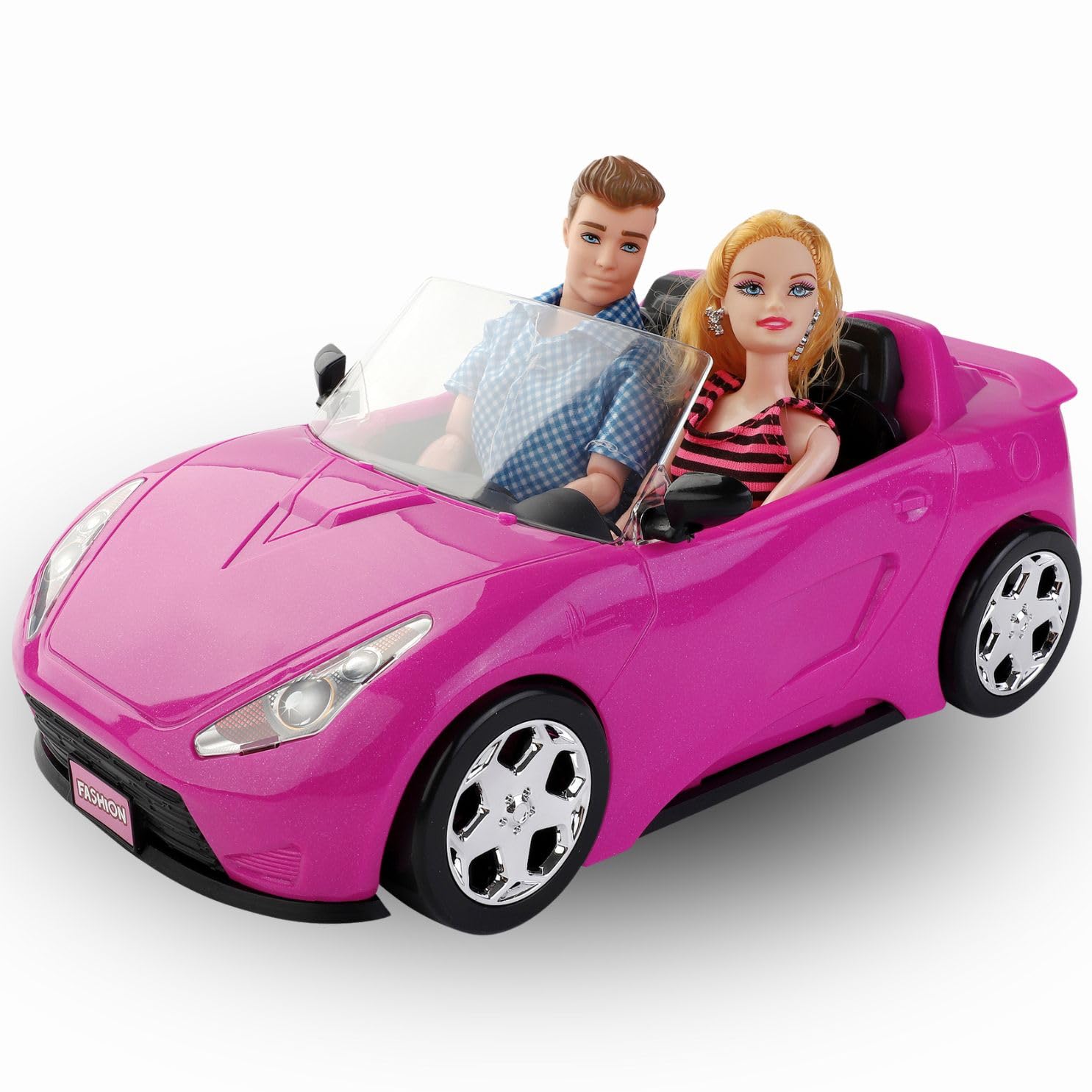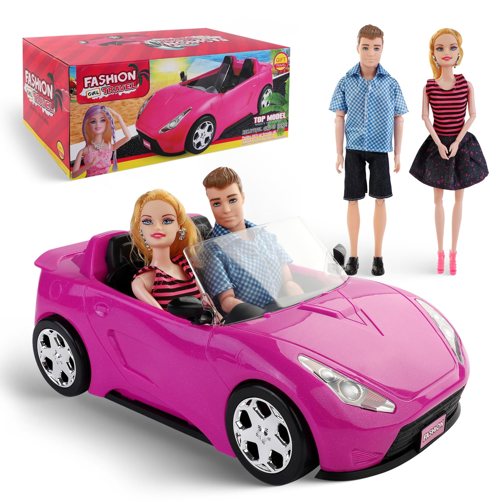 Liberty Imports Doll-Sized Convertible Car for Dolls – 2-Seater Pink Vehicle with Rolling Wheels, Seat Belts w/ Two 11.5" Dolls Included
