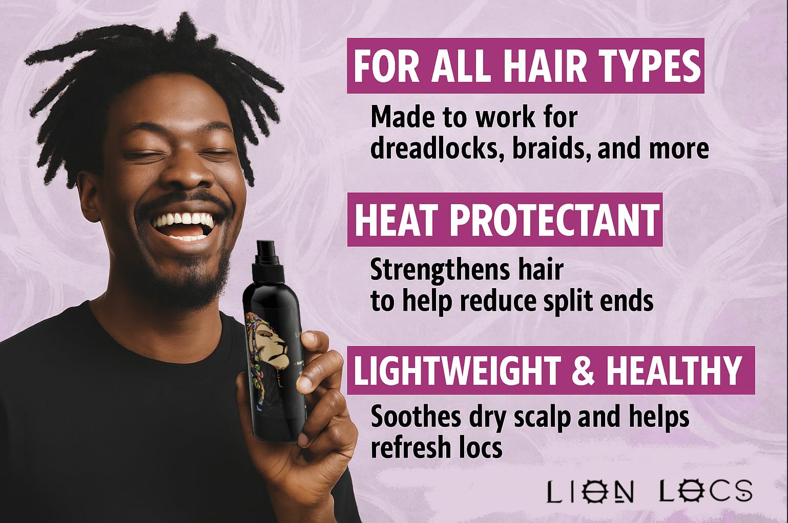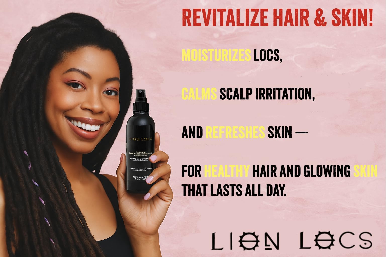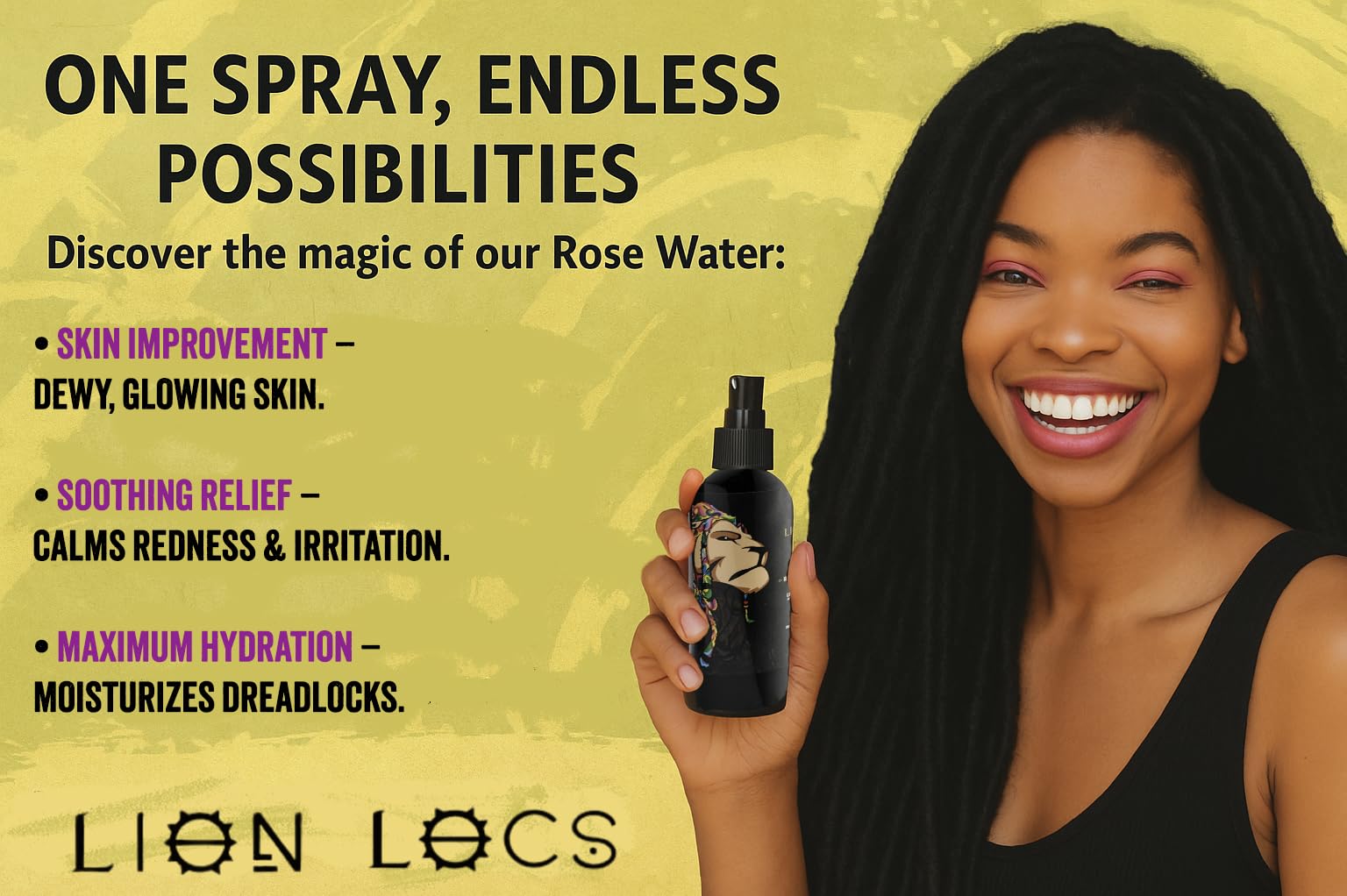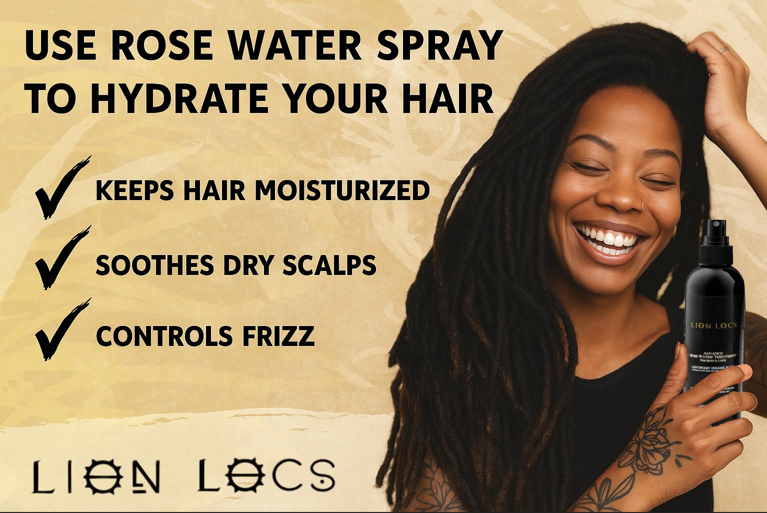 Lion Locs Rosewater Spray for Dreads and Locs - Organic Vegan Conditioner with Aloe, Oils, Vitamins, and Glycerin