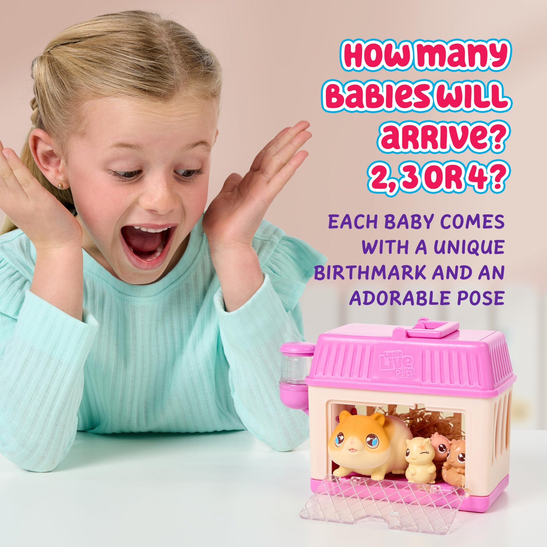 Little Live Pets Hamster Mini Interactive Toy Set, Hutch Animal Playset with 3 Surprise Babies, 20+ Sounds, Hamster Must-Haves for Ages 3+