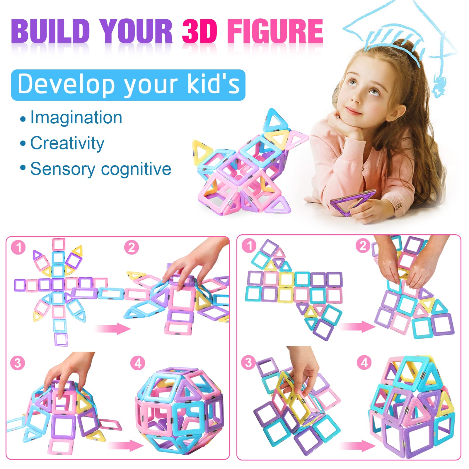 Magnetic Tiles Building Set for Kids 3-8+, STEM Castle Blocks, Macaron Colors, Creative Educational Toys, Birthday & Christmas Gift