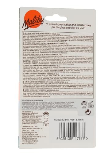 Malibu Duo Pack Sun Protection Face Cream and Lip Balm SPF 30 Water Resistant