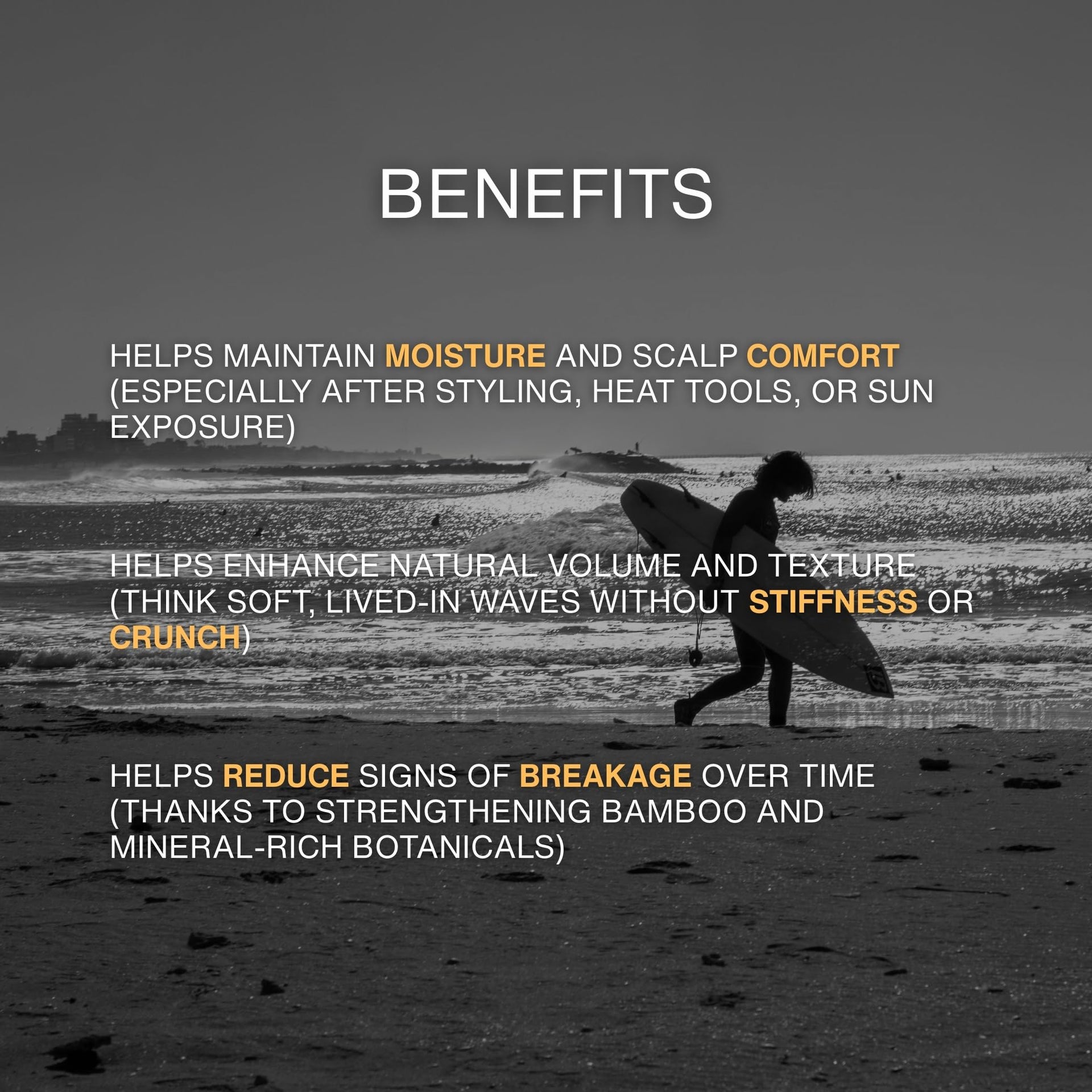 - Matte Volume, Zero Crunch – Add natural lift and beachy texture without stiffness, stickiness, or shine.