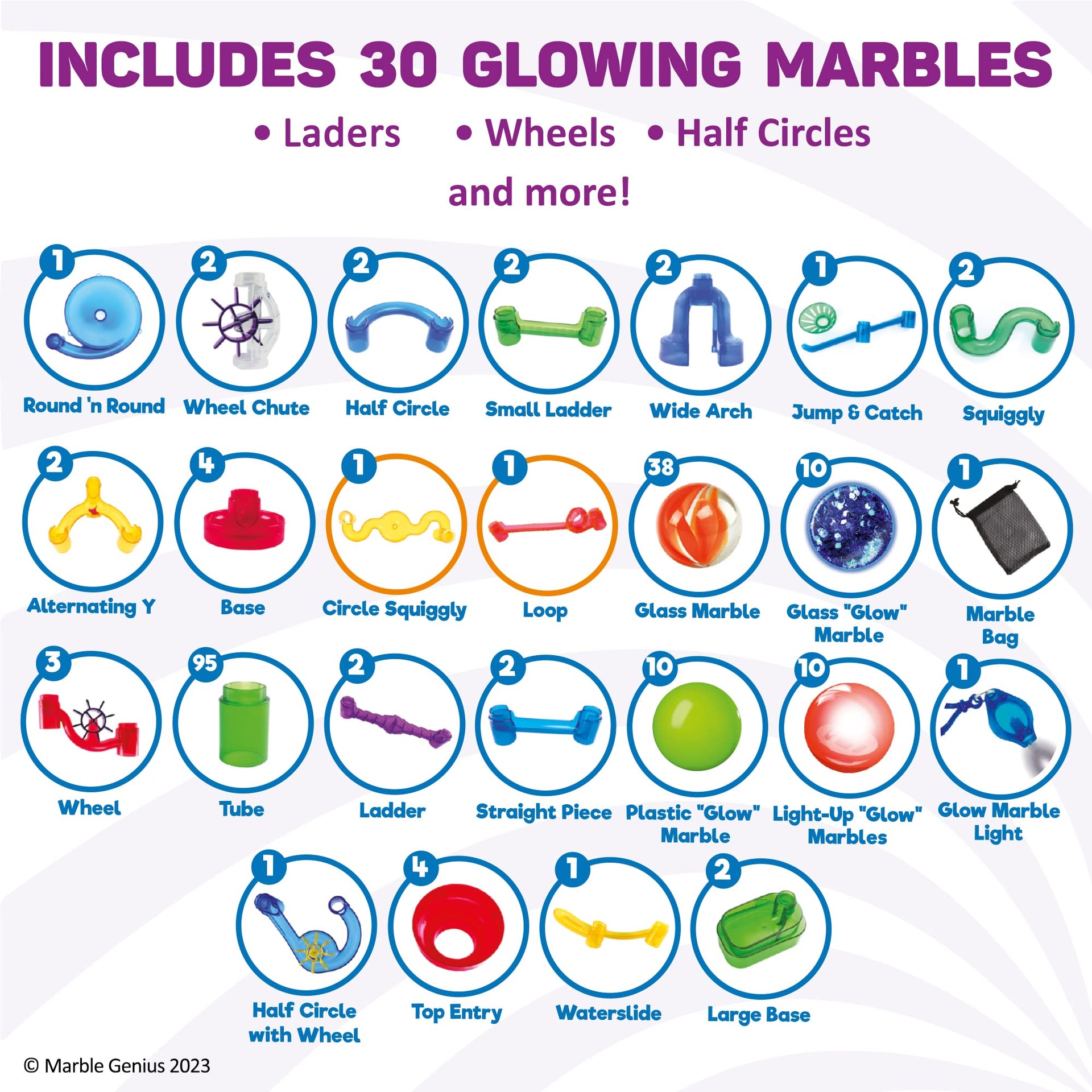 Marble Genius Marble Run Track - 200-Piece, Multicolor, Space Theme - Glow-in-The-Dark Marble Set & STEM Building Toy & Race Track for Ages 4+