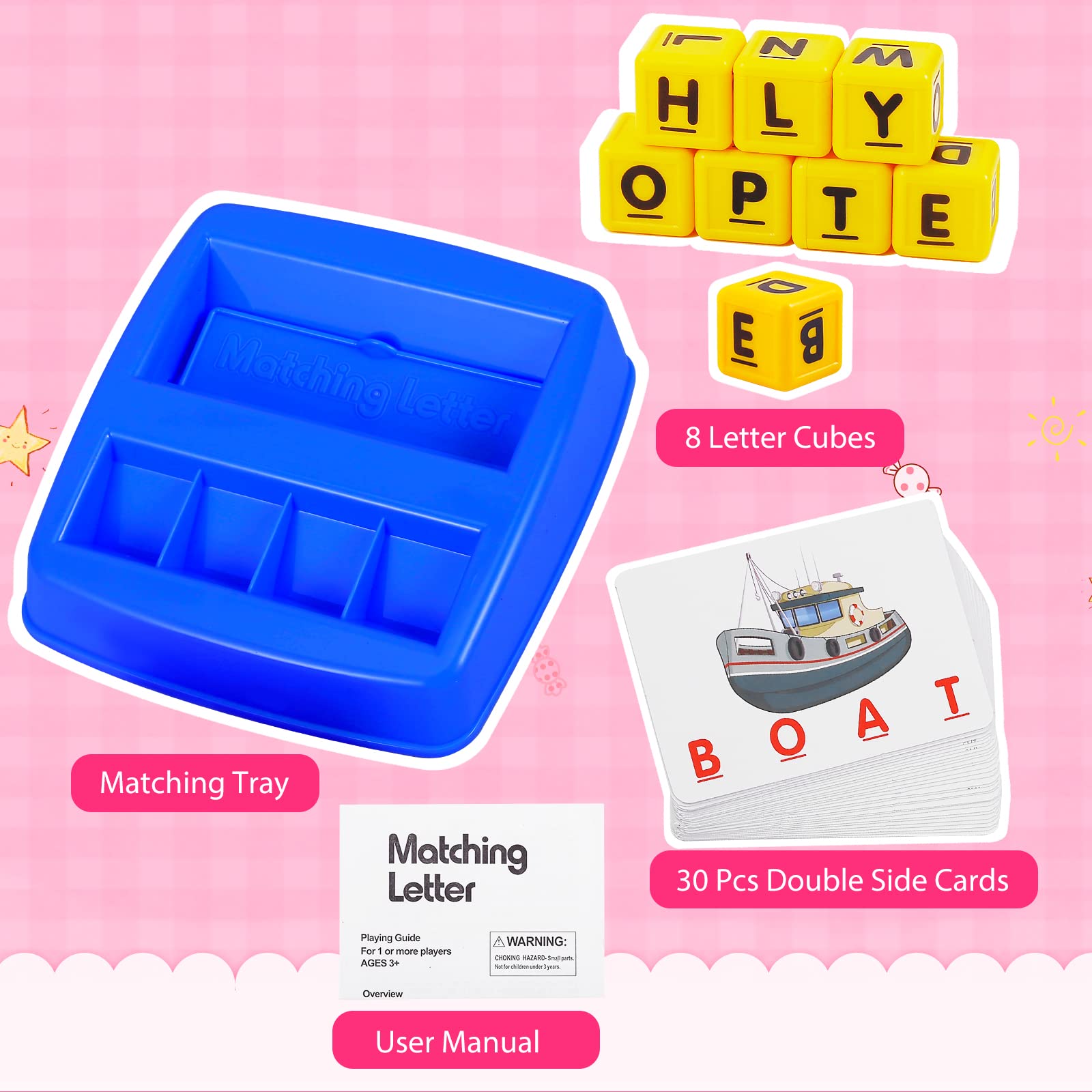 - Package Included: The matching letter game comes with 1 tray, 8 letter cubes, 30 cards(60 word cards with 3 and 4 letter words).