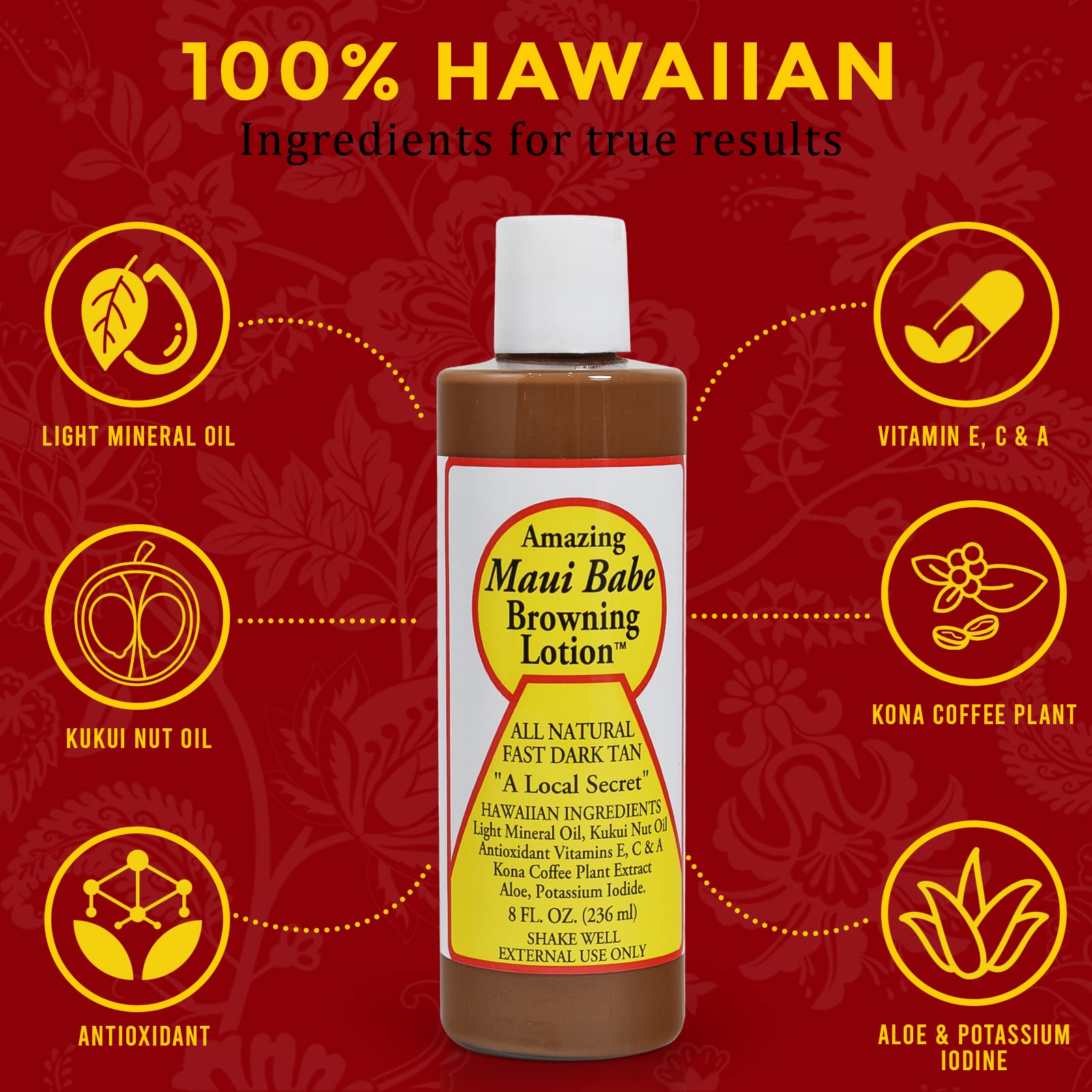 - THE HAWAIIAN SECRET TO A GORGEOUS TAN: The Amazing Maui Babe Browning Lotion is a local Hawaiian formula that has been loved for years for its impressive power to do exactly what it promises: to accelerate the sun triggered tanning process and offer you a natural, impressively beautiful tan. Simply apply it all over your body and get the most out of your time in the sun! **Maui Babe Browning lotion is not a self tanner or bronzer. You do need to be in the sun in order to acquire a tan.**