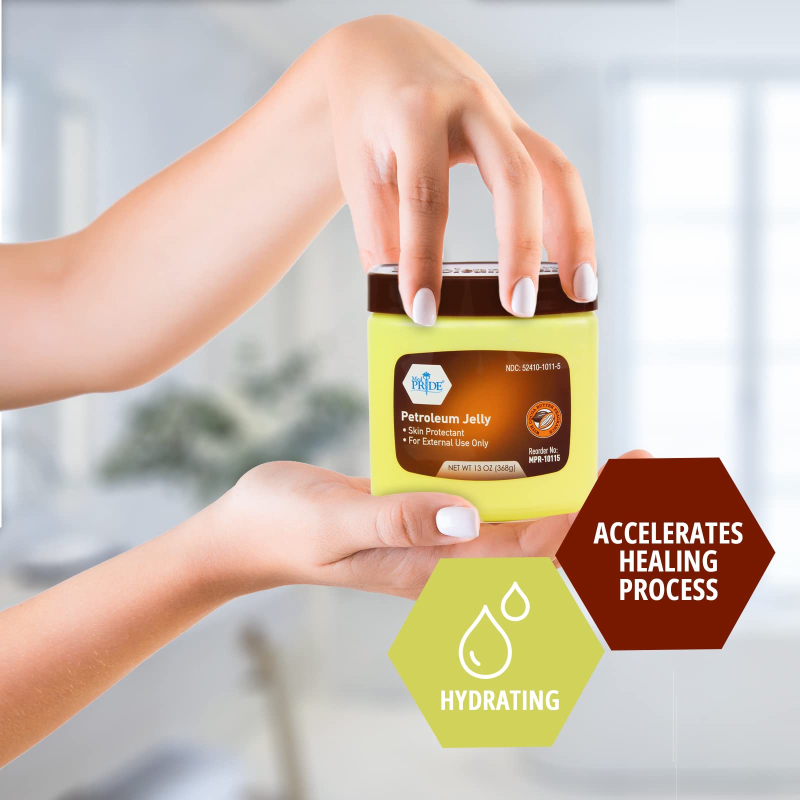 Med Pride Petroleum Jelly with Cocoa Butter – Large 13 oz Moisturizing Skin Protectant for Dry Skin, Rashes & Burns, Light Fragrance