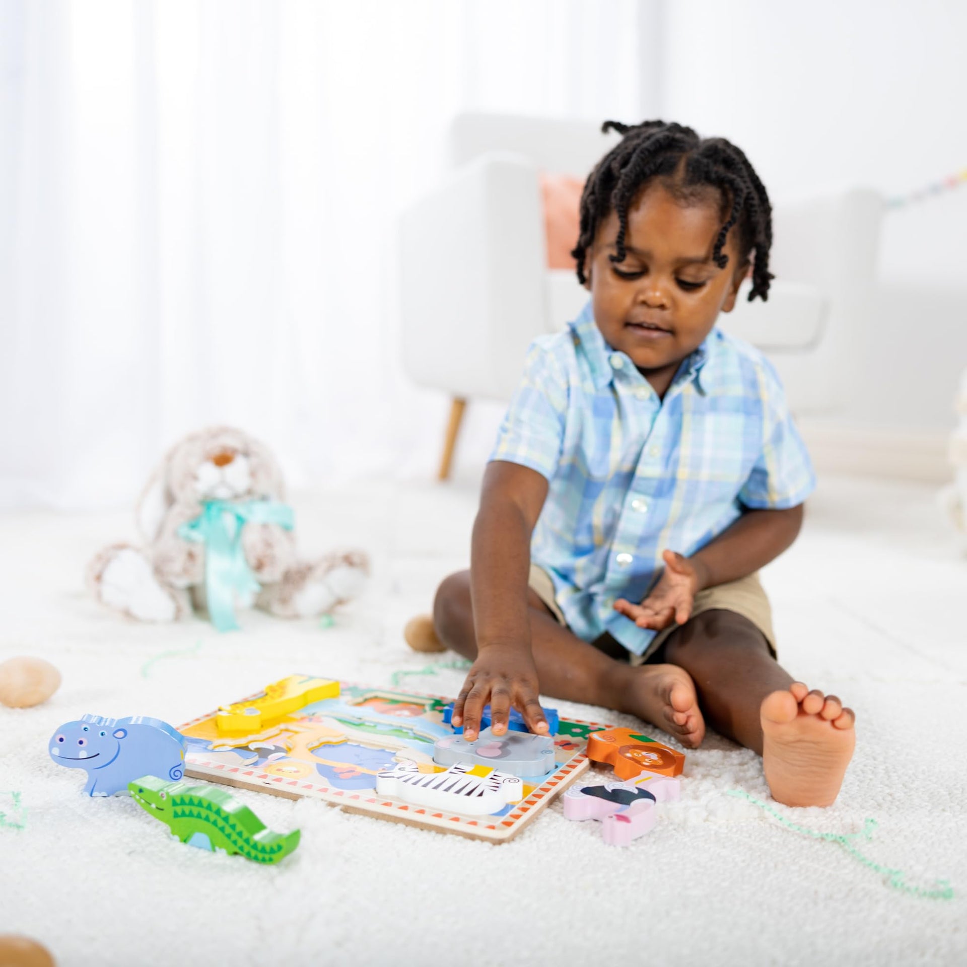 - Safari Animal Puzzle for Toddlers – Features 8 easy-to-grasp wooden pieces with wild animal shapes including a giraffe, elephant, zebra, and more for imaginative, hands-on play.