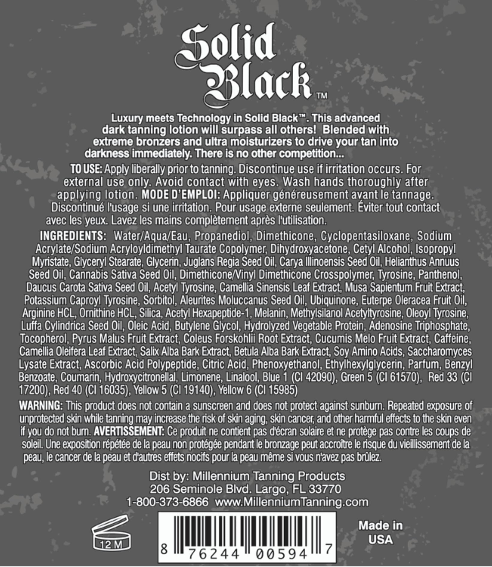 Millennium Tanning SOLID BLACK 100X Dark Tanning Lotion Indoor Outdoor Tan Enhancing Silicone Bronzer Tanning Bed Lotion 13.5 Fl oz (400 ml)