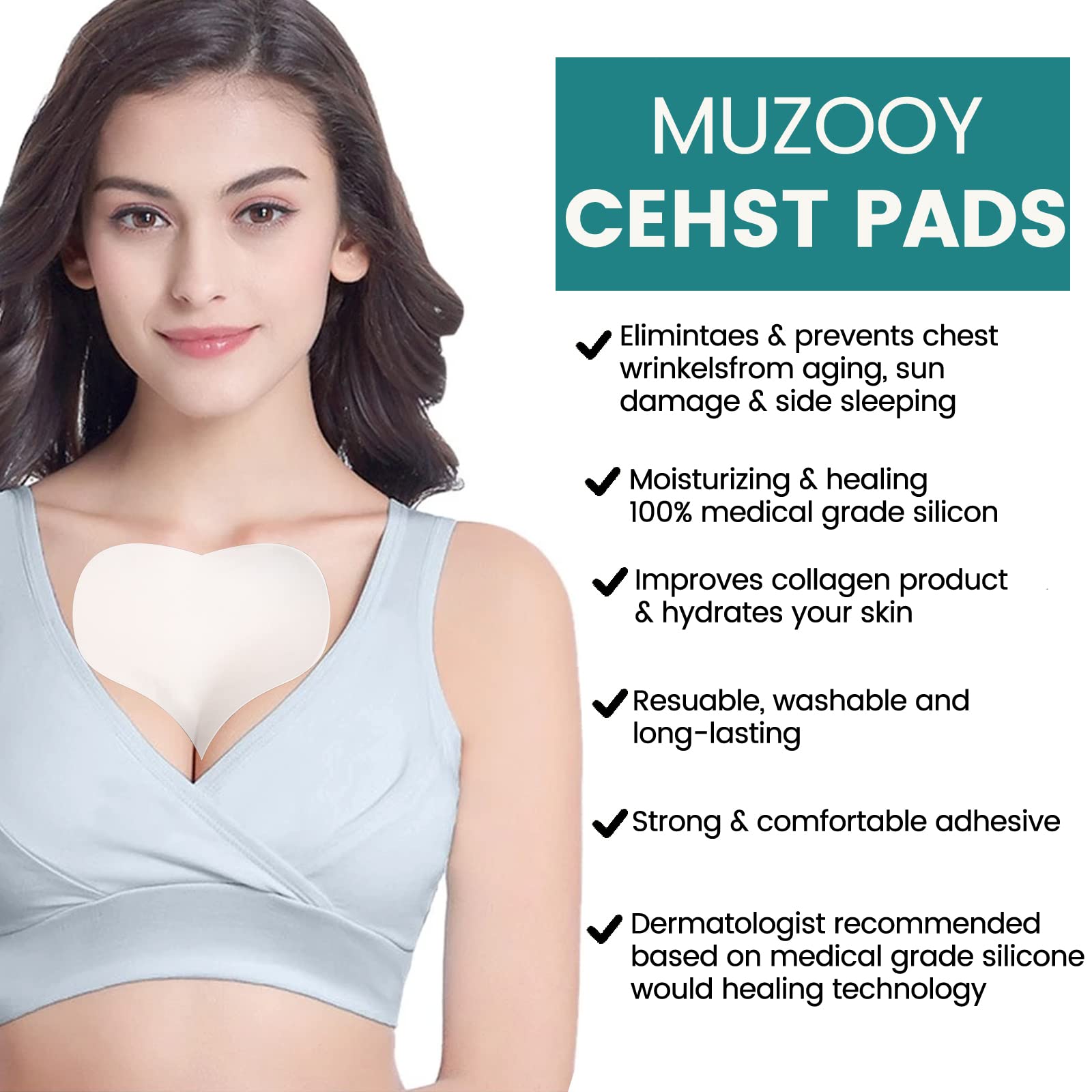 Muzooy 4-Pack Chest Wrinkle Pads – Reusable 100% Medical Grade Silicone Décolleté Anti-Wrinkle Patches, Overnight Skin Smoother