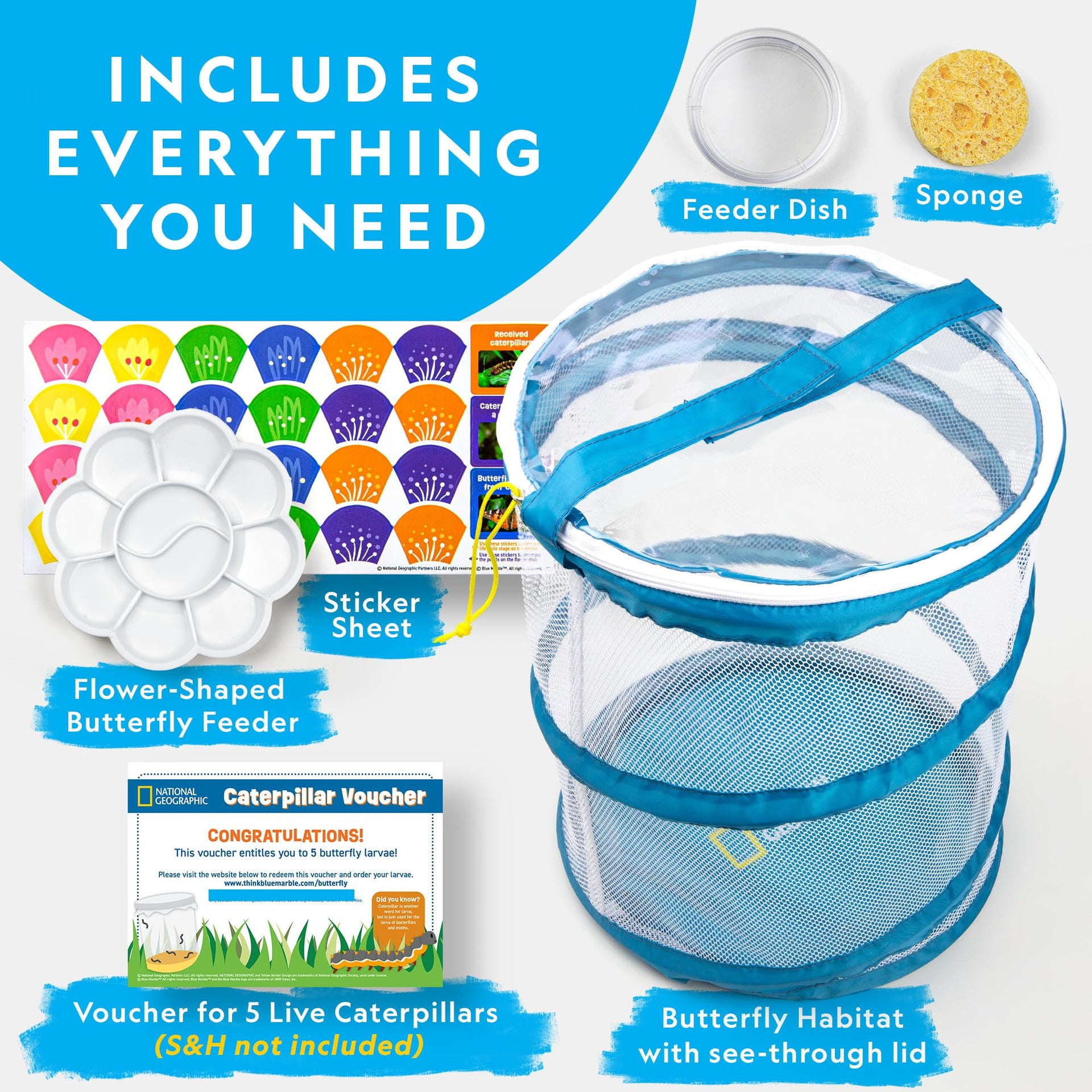 National Geographic Butterfly Growing Kit - Butterfly Habitat with Cage, Feeder & Voucher for 5 Caterpillars (S&H Not Included)