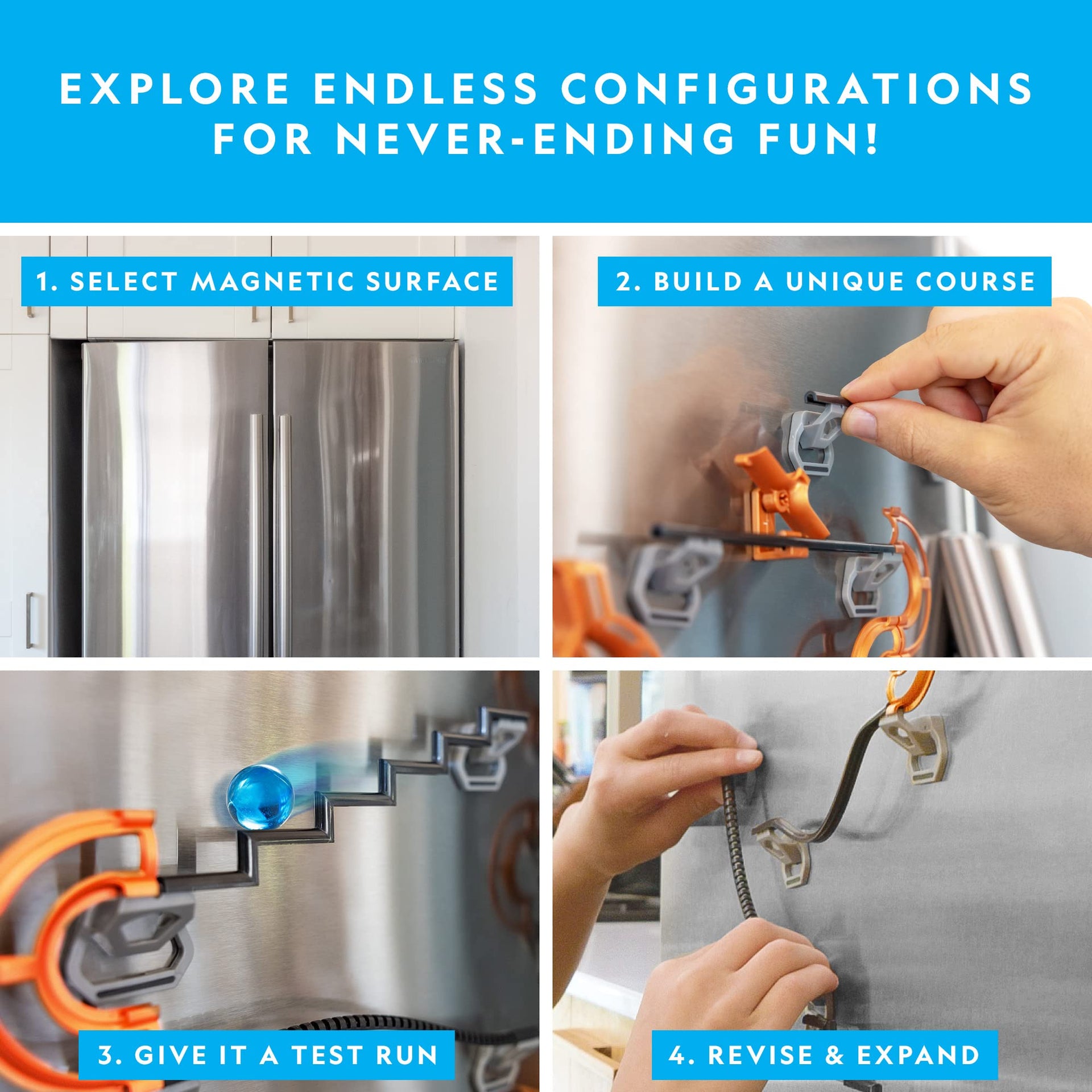 National Geographic Magnetic Marble Run - 150-Piece STEM Building Set with Marbles, Magnetic Track & Trick Pieces for Kids & Adults